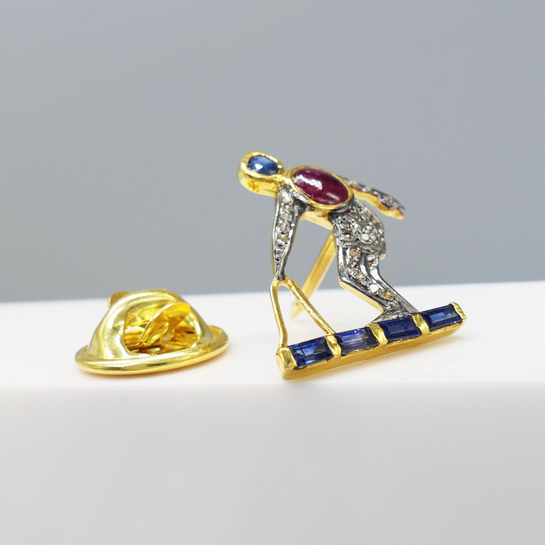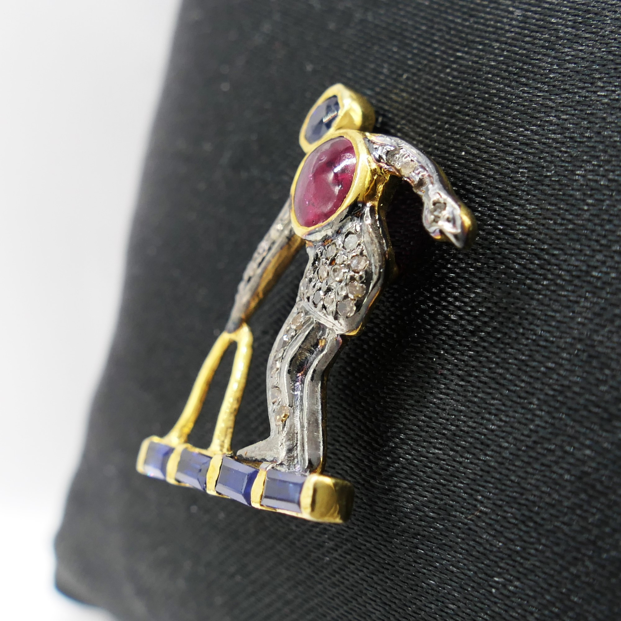 4897699. SAPPHIRE, RUBY & DIAMOND buttonhole stud.