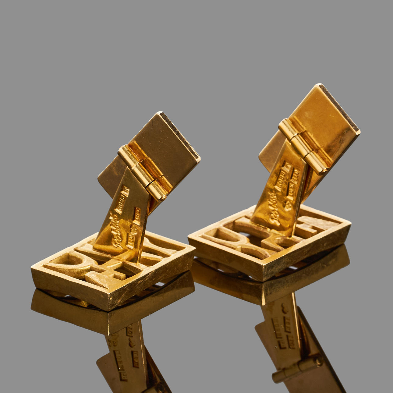 ROBBERT, cufflinks, 1 pair, 18k gold, openwork decor, stamp signed, 1983, Panty.