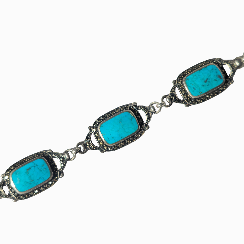 SILVER BRACELET WITH MARQUESITAS AND TURQUOISE.