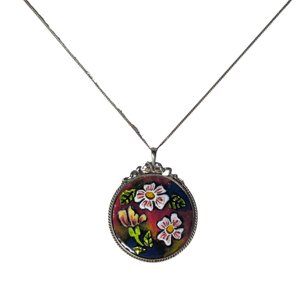 NECKLACE WITH PENDANT IN SILVER AND ENAMEL.