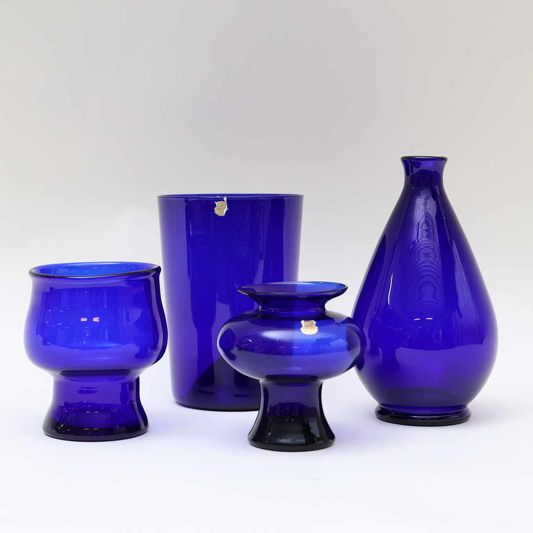 4898776. GULLASKRUF, vases 4pcs, blue tinted glass.