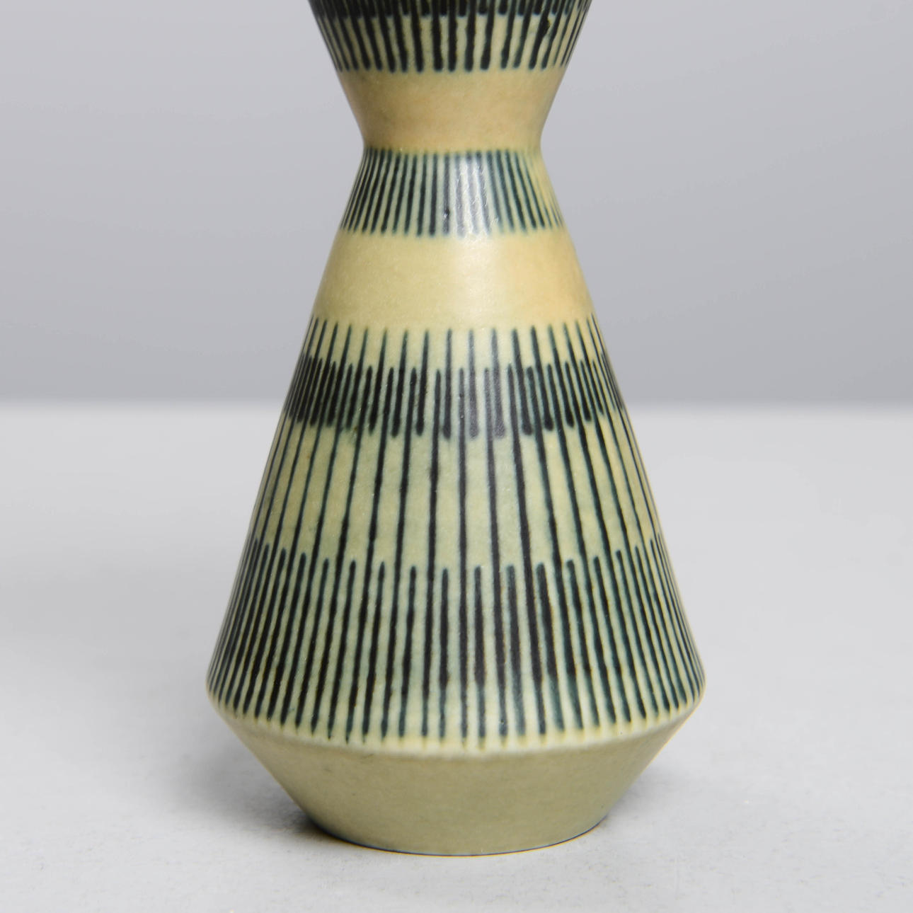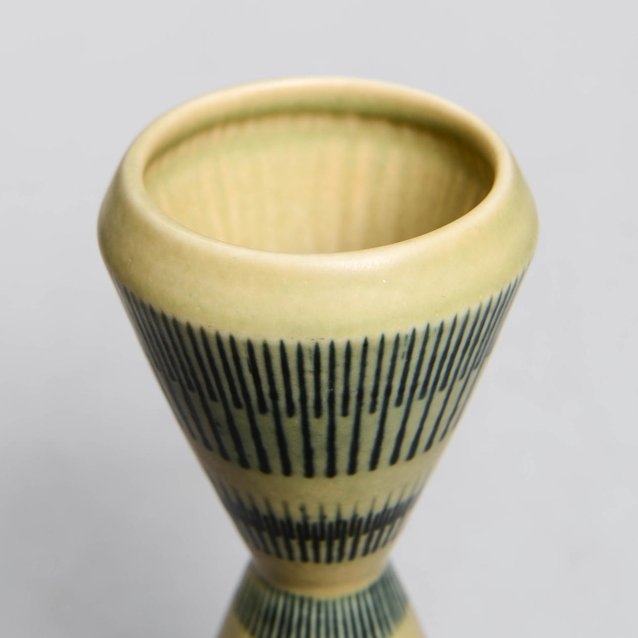 Glazed stoneware. Hourglass shaped with relief decor. Height 20 cm.