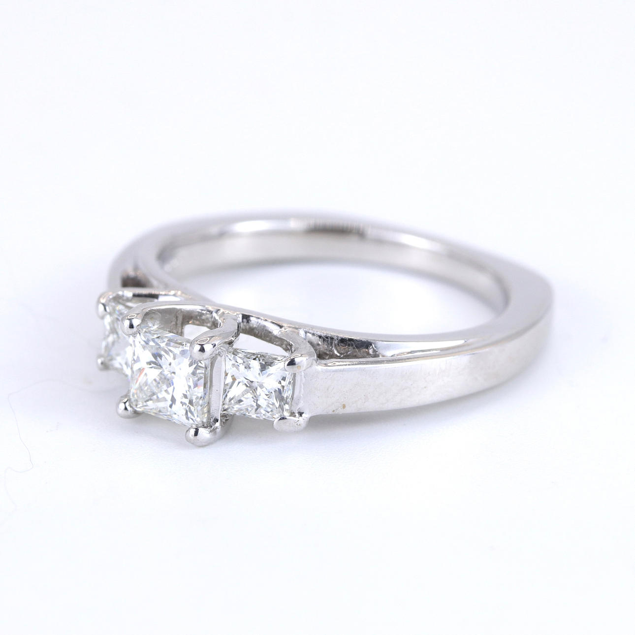 An 18ct white gold ring set with princes cut diamonds. Dia. total 0.80ct approx. Colour: G/H. Clarity: SI.