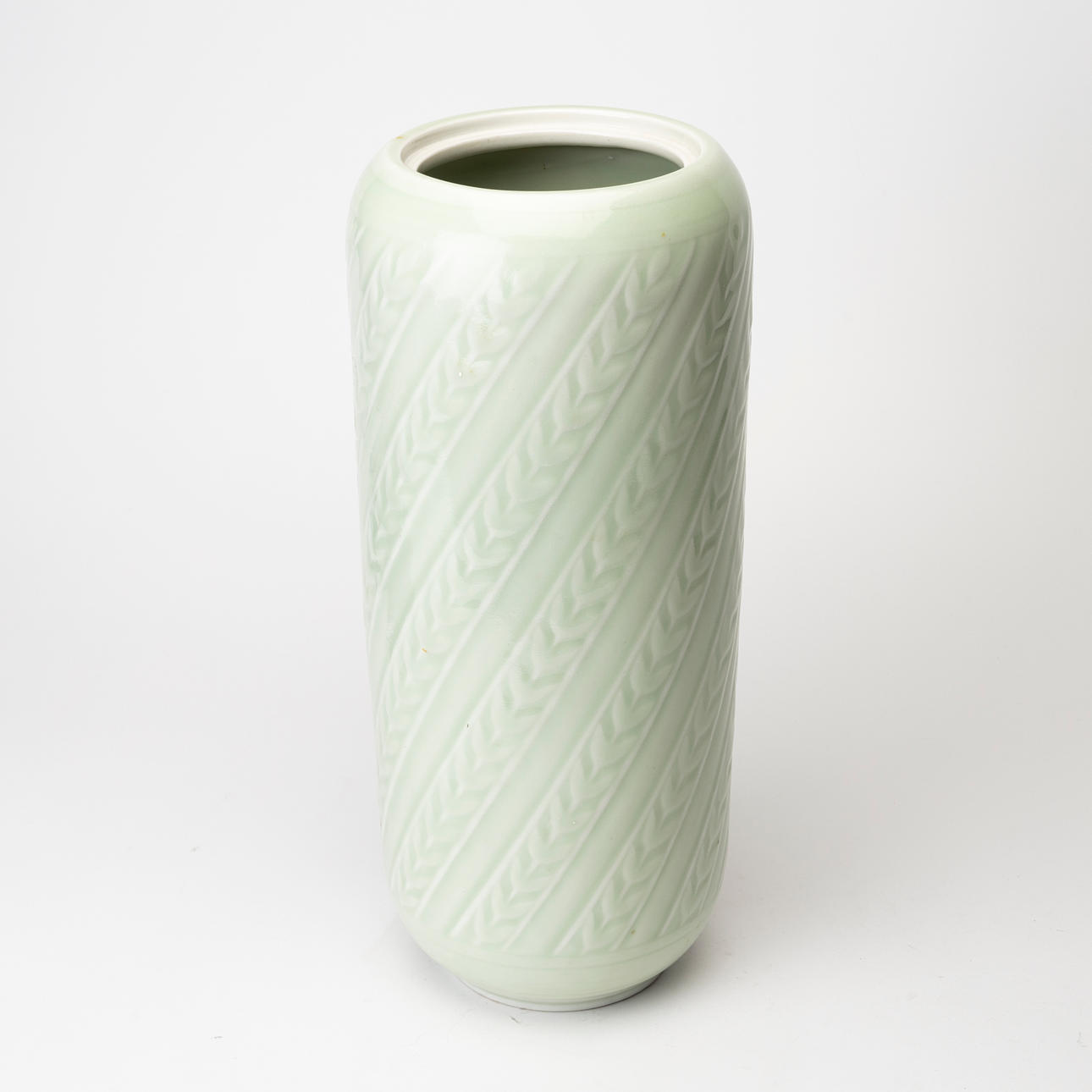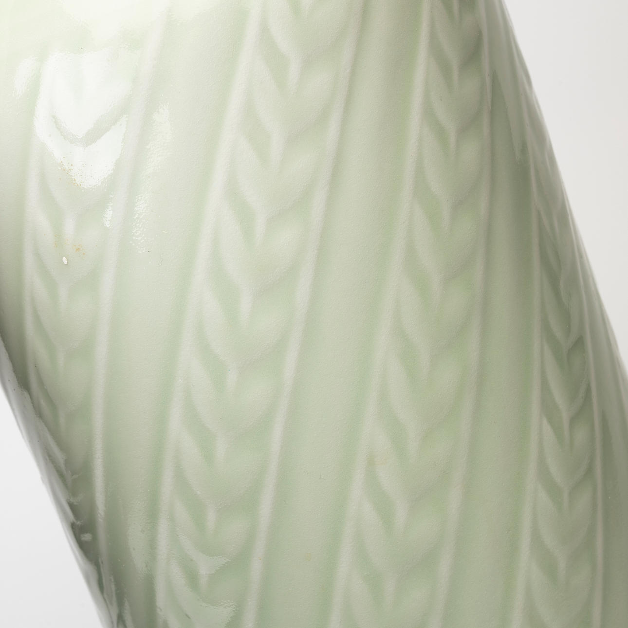 Green-beige enamel with leaf-shaped relief decor, height approx. 38,5 cm.