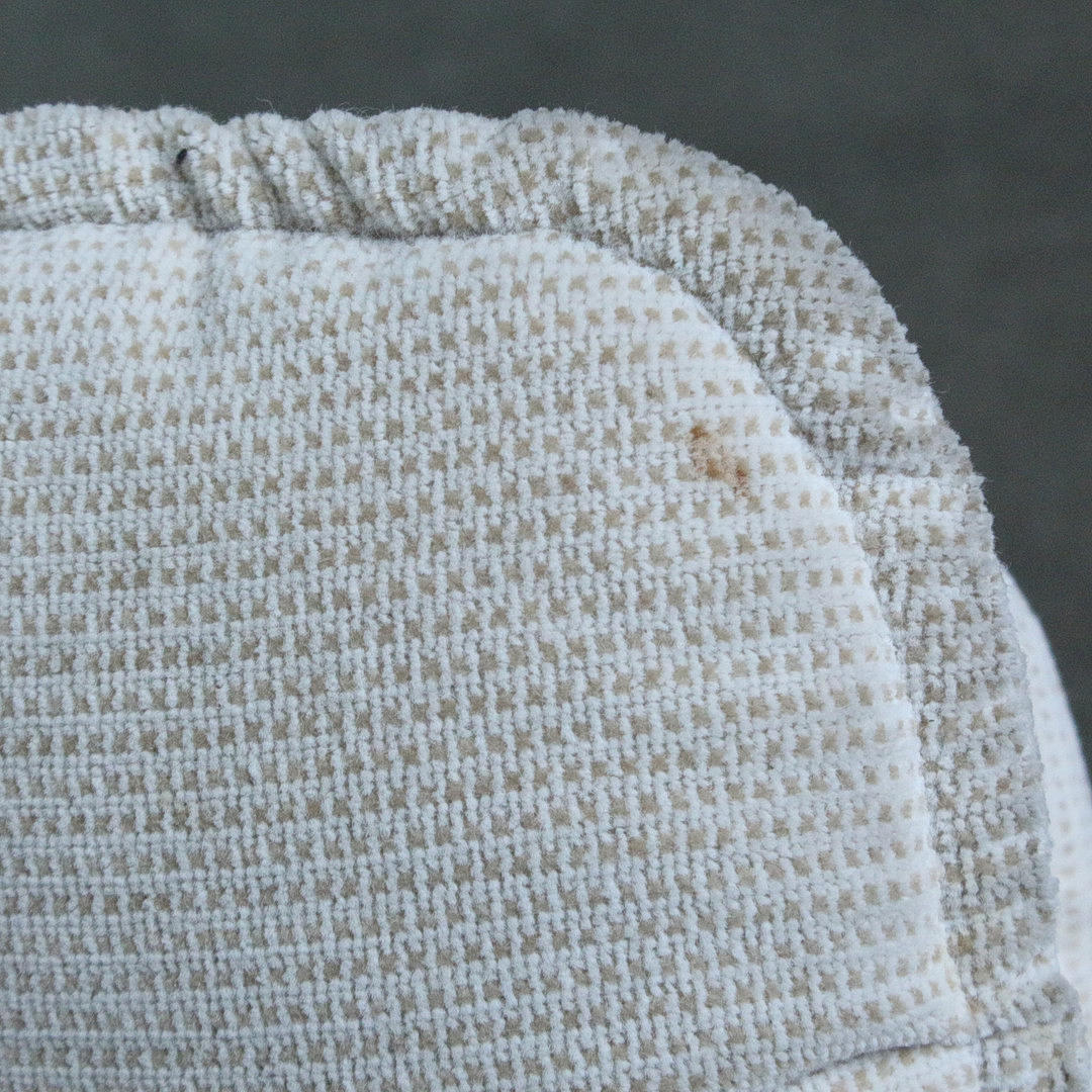 Age-appropriate signs of use and rubbing, in places rubbing and discoloration/stains in the fabric.