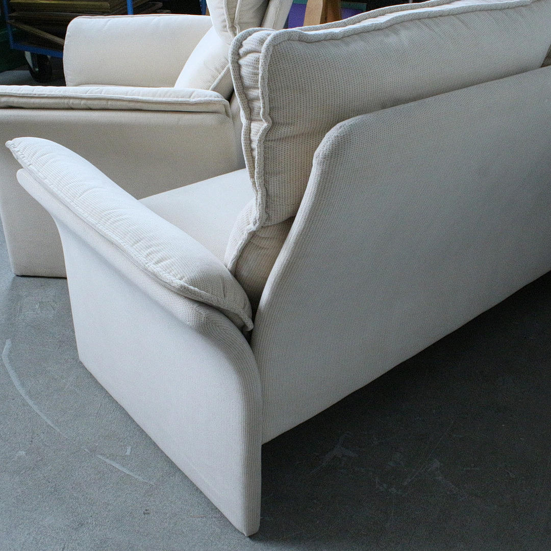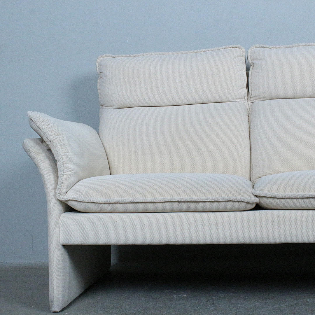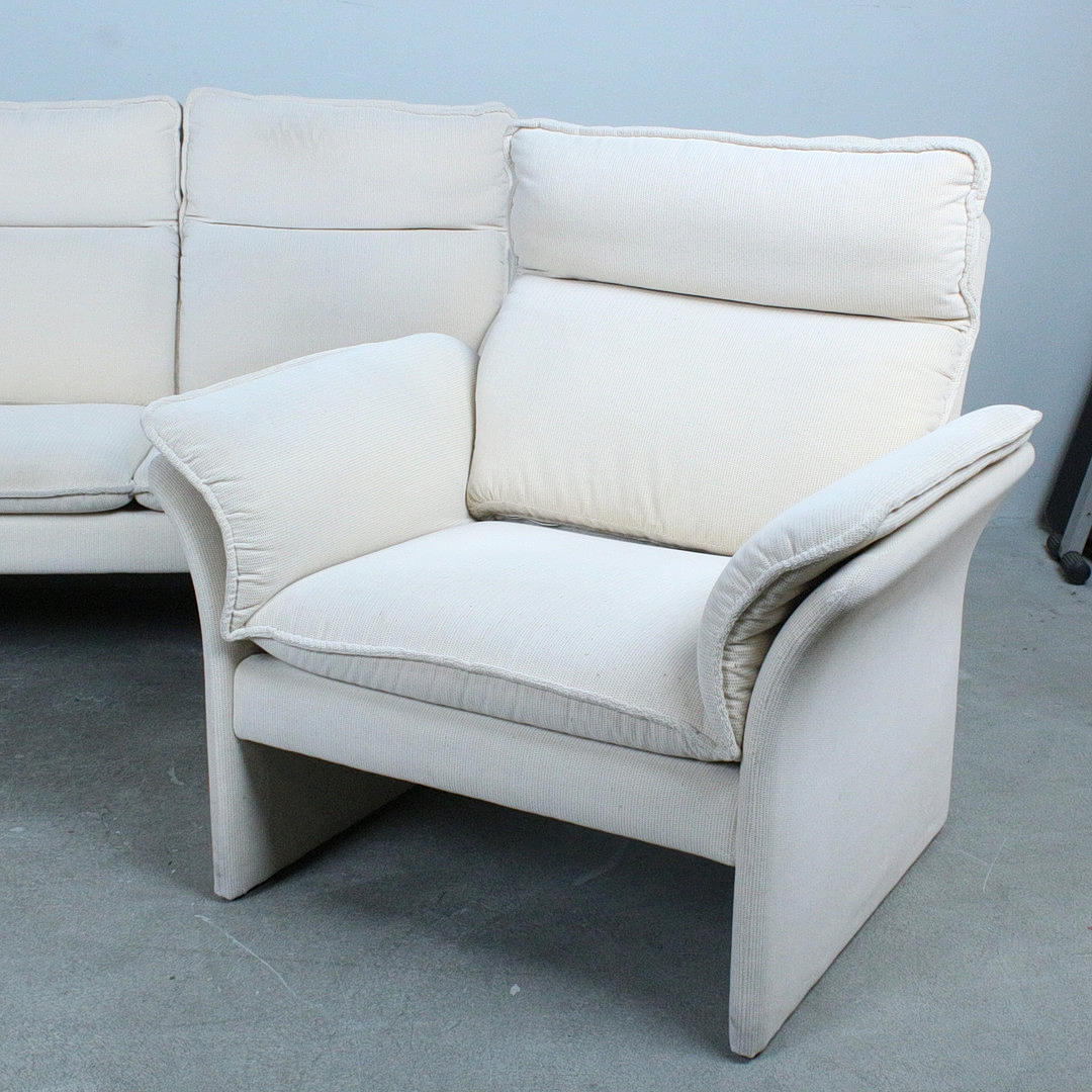 Dreipunkt, sofa/three-seater and armchair, upholstered construction covered with bright, patterned fabric, provided with manufacturer,