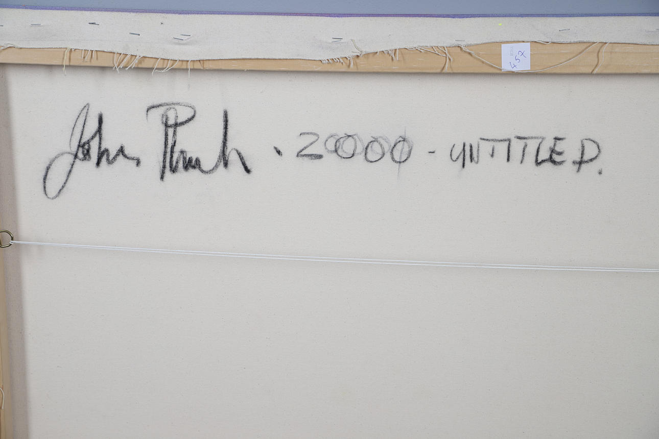 Inscribed verso, oil on canvas, 122cm x 122cm unframed.