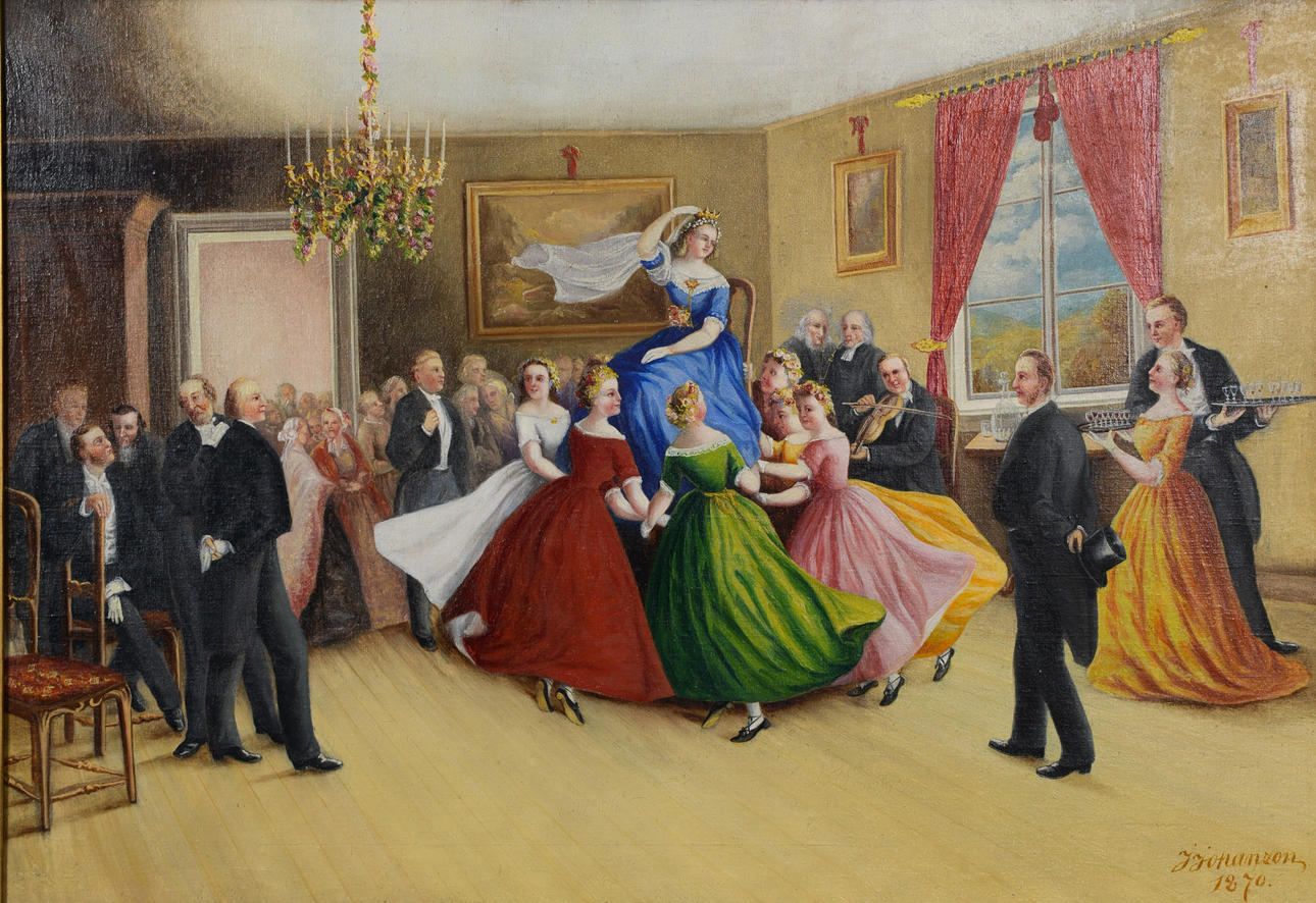 4900033. OIDENTIFIERAD KONSTNÄR. Wedding party, oil on panel, signed j johanzon, dated 1870.