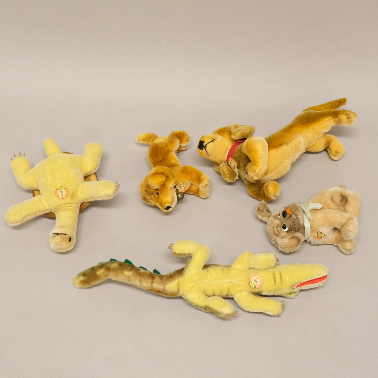 Three dogs, a turtle and a crocodile. All labeled. Length 13-36cm.