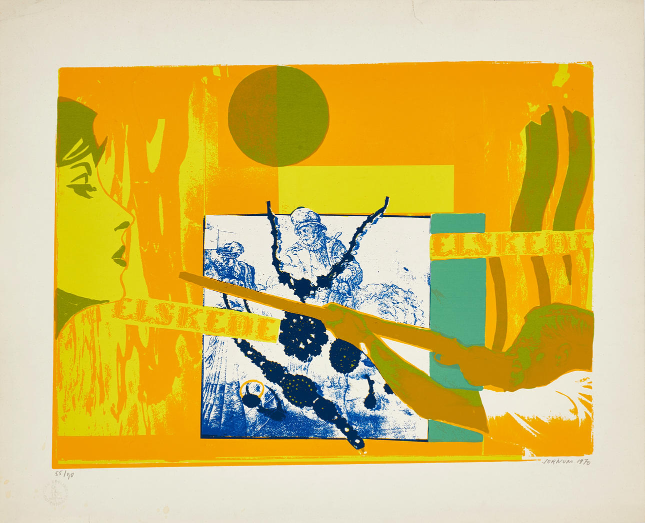 4900748. BØRGE SØRENSEN-SORNUM (Denmark, 1920—1985). Composition, BELOVED, signed and dated Sornum 1970, numbered 55/90, lithograph in colours.
