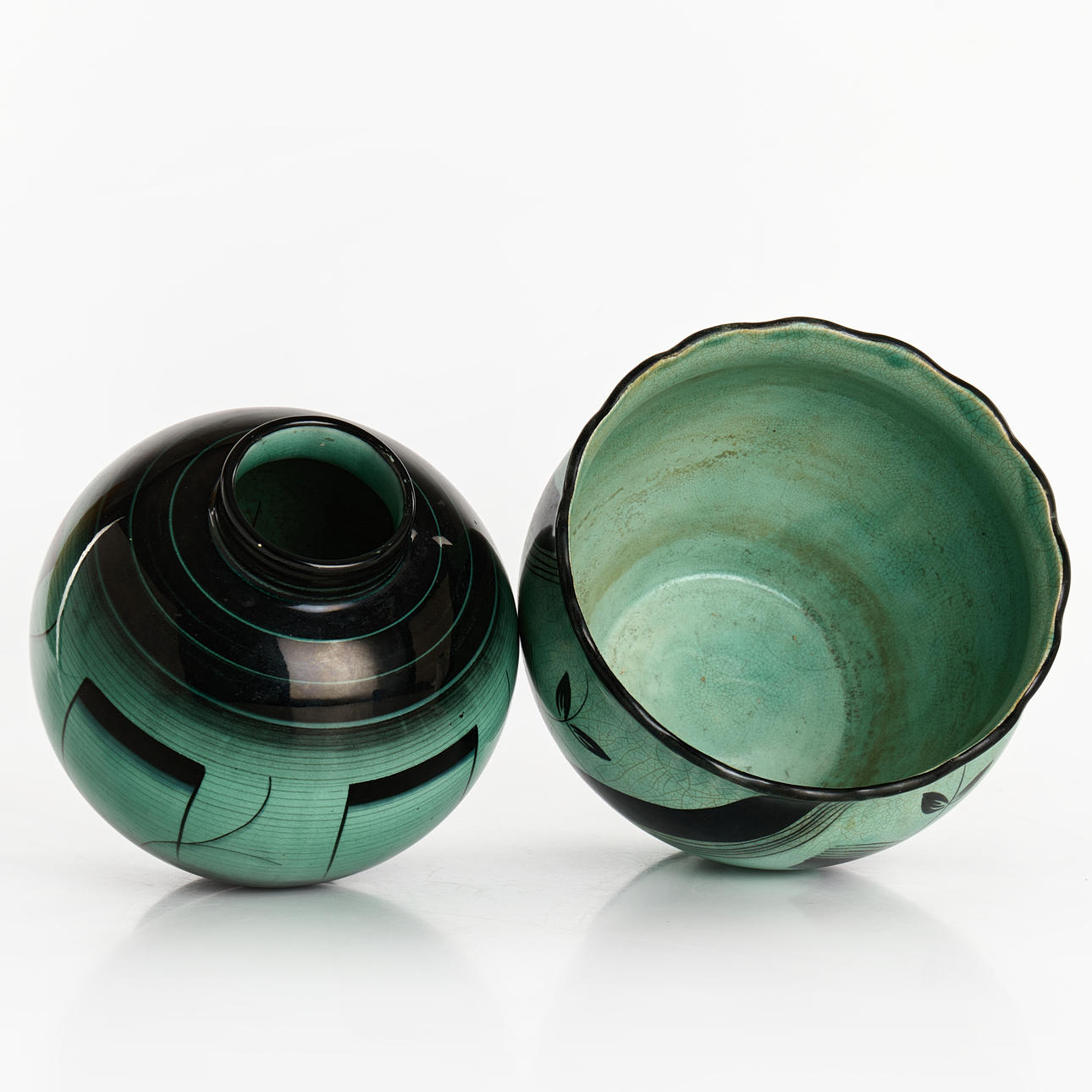 ILSE CLAESSON, 2 pcs. A vase, flintware, art deco, Rörstrand, monogram signed.