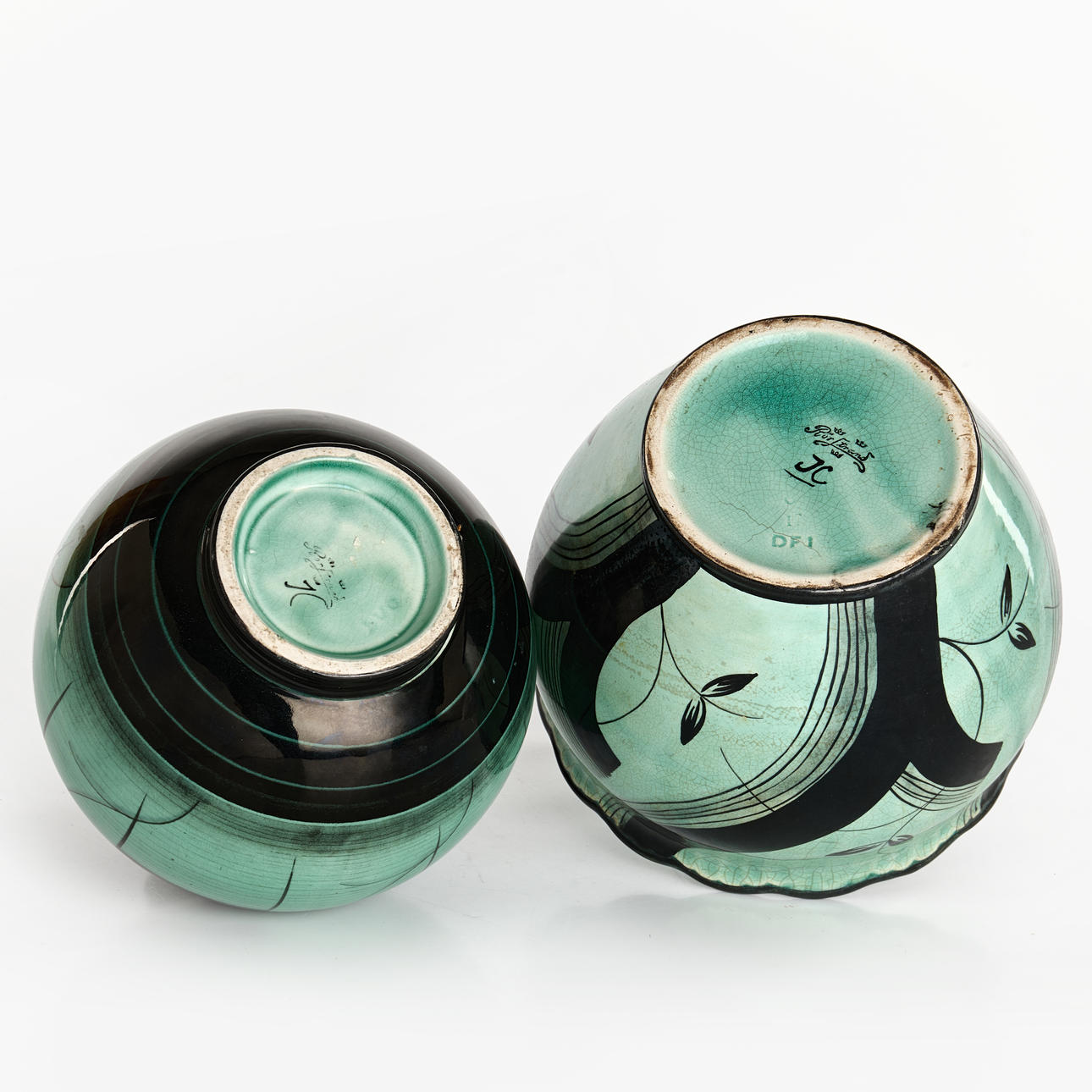 4900956. ILSE CLAESSON, 2 pcs. A vase, flintware, art deco, Rörstrand, monogram signed.