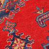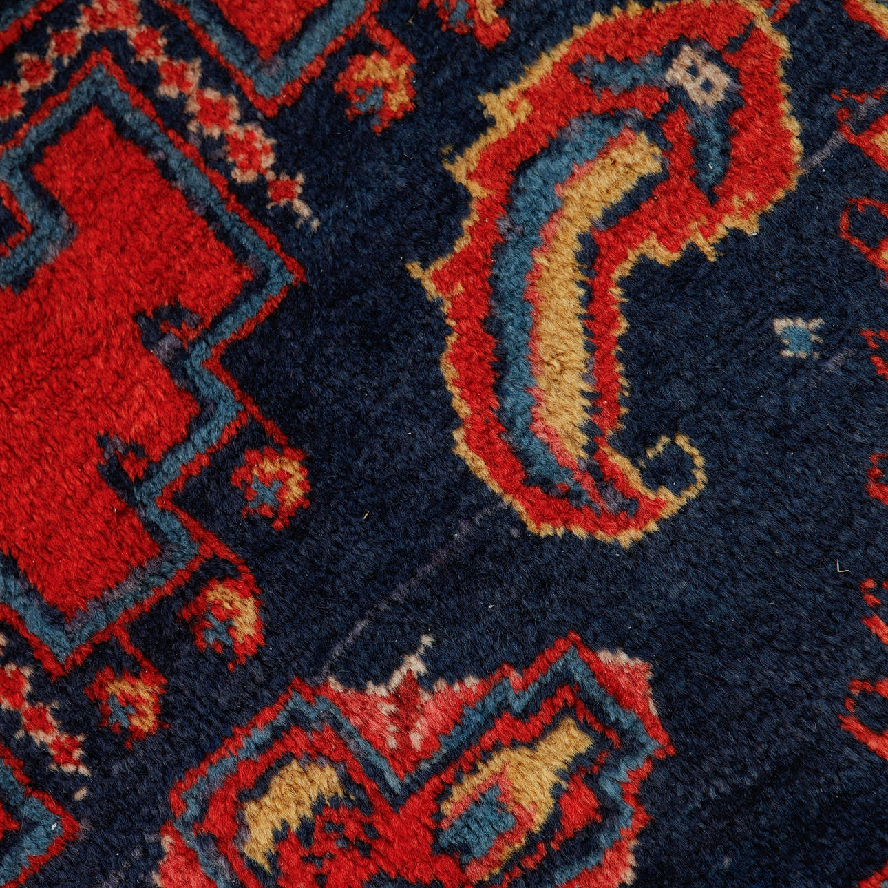Polychrome medallion against red background.