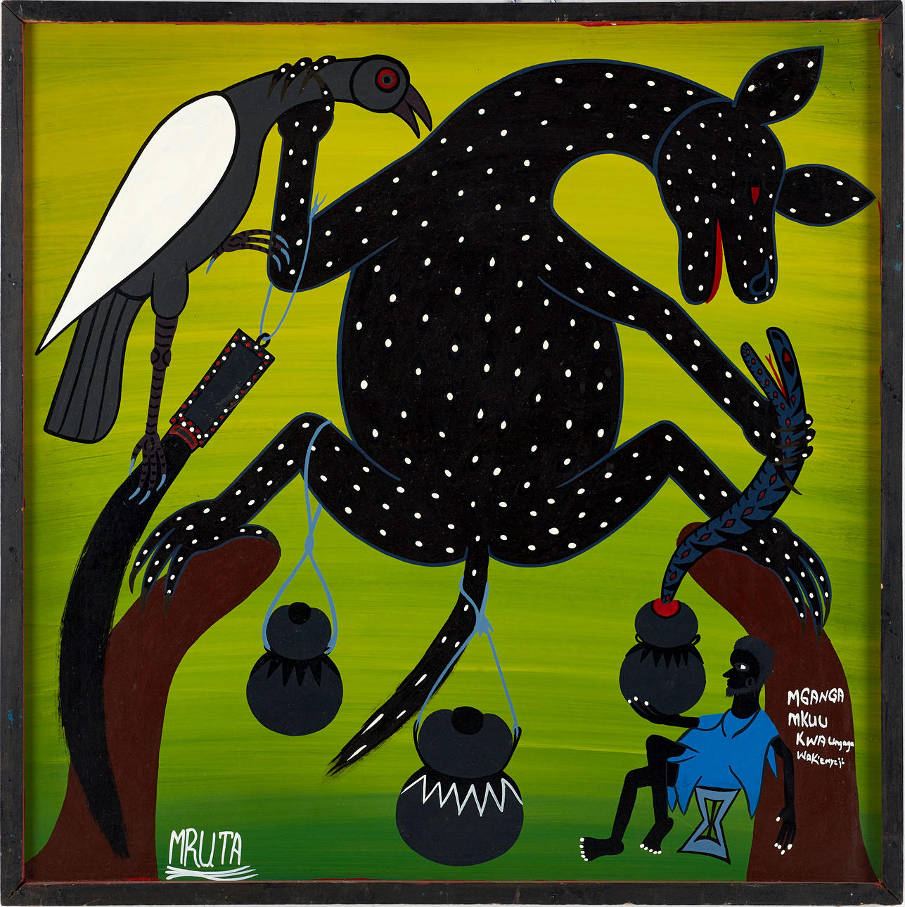 4901102. HASHIM MRUTA (1942-1998): Composition with animals, lacquer paint on panel.