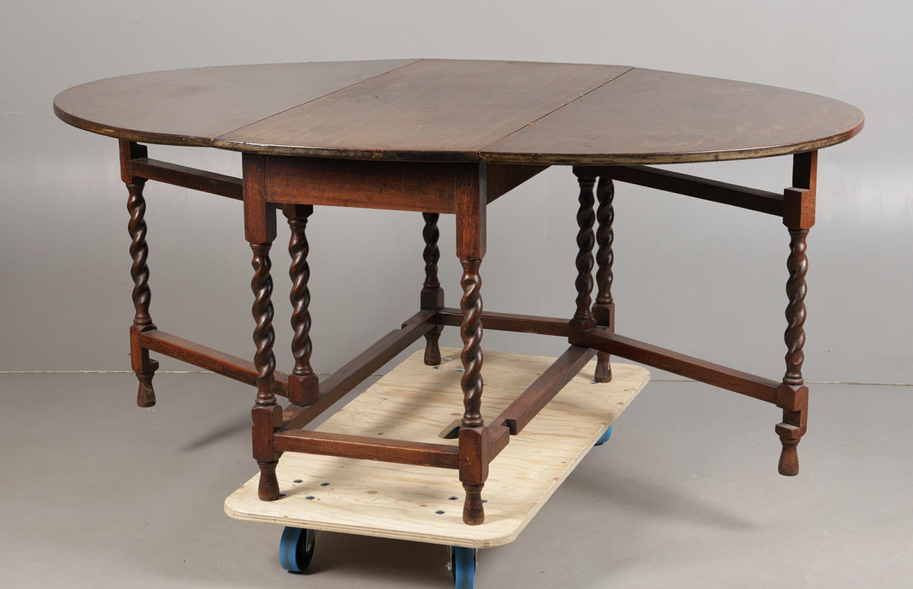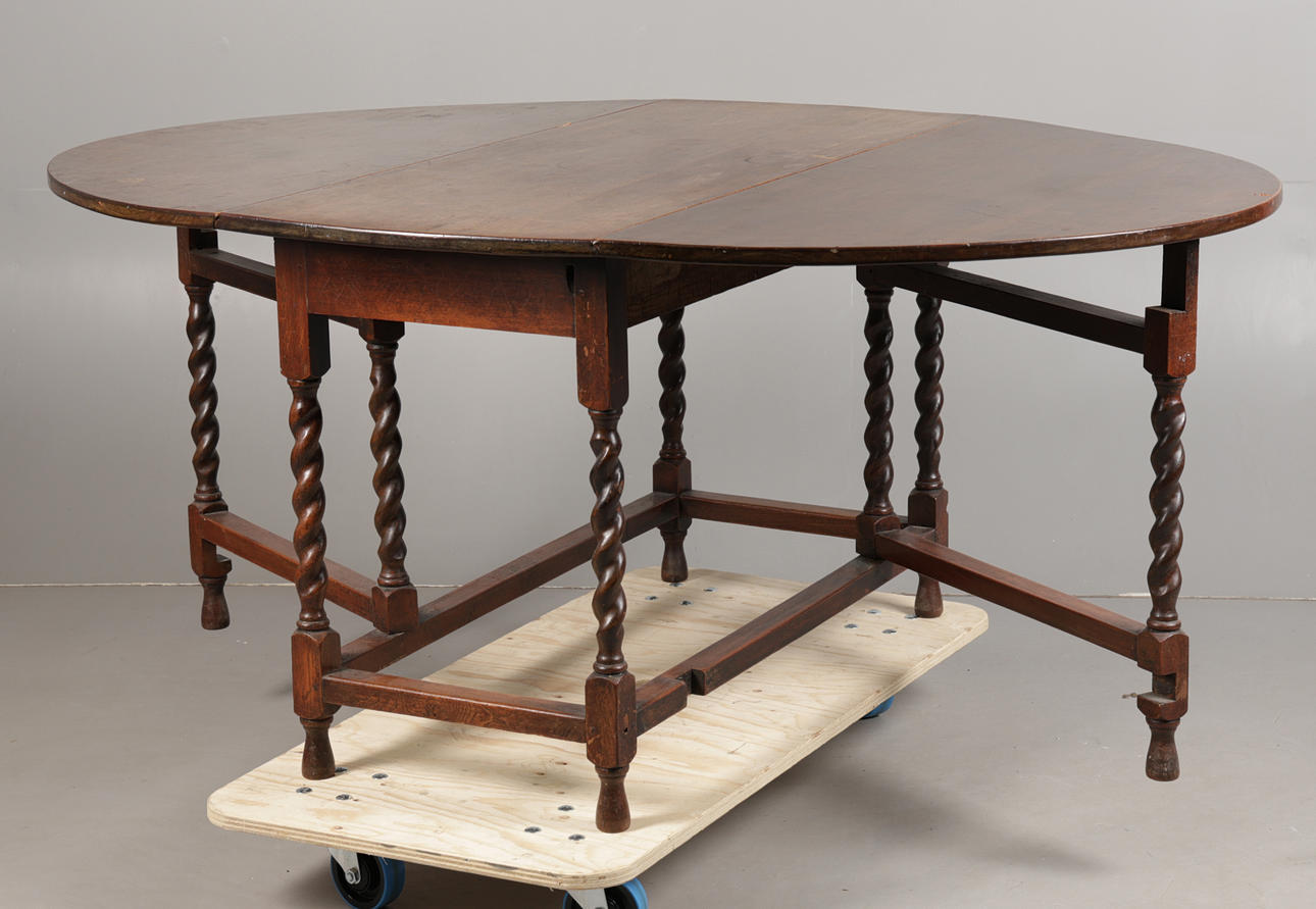 4902686. AN 18TH CENTURY STYLE OAK DROP LEAF GATE LEG TABLE.