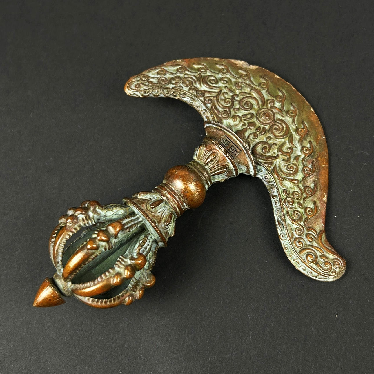 A TIBETAN BRONZE RITUAL ITEM.