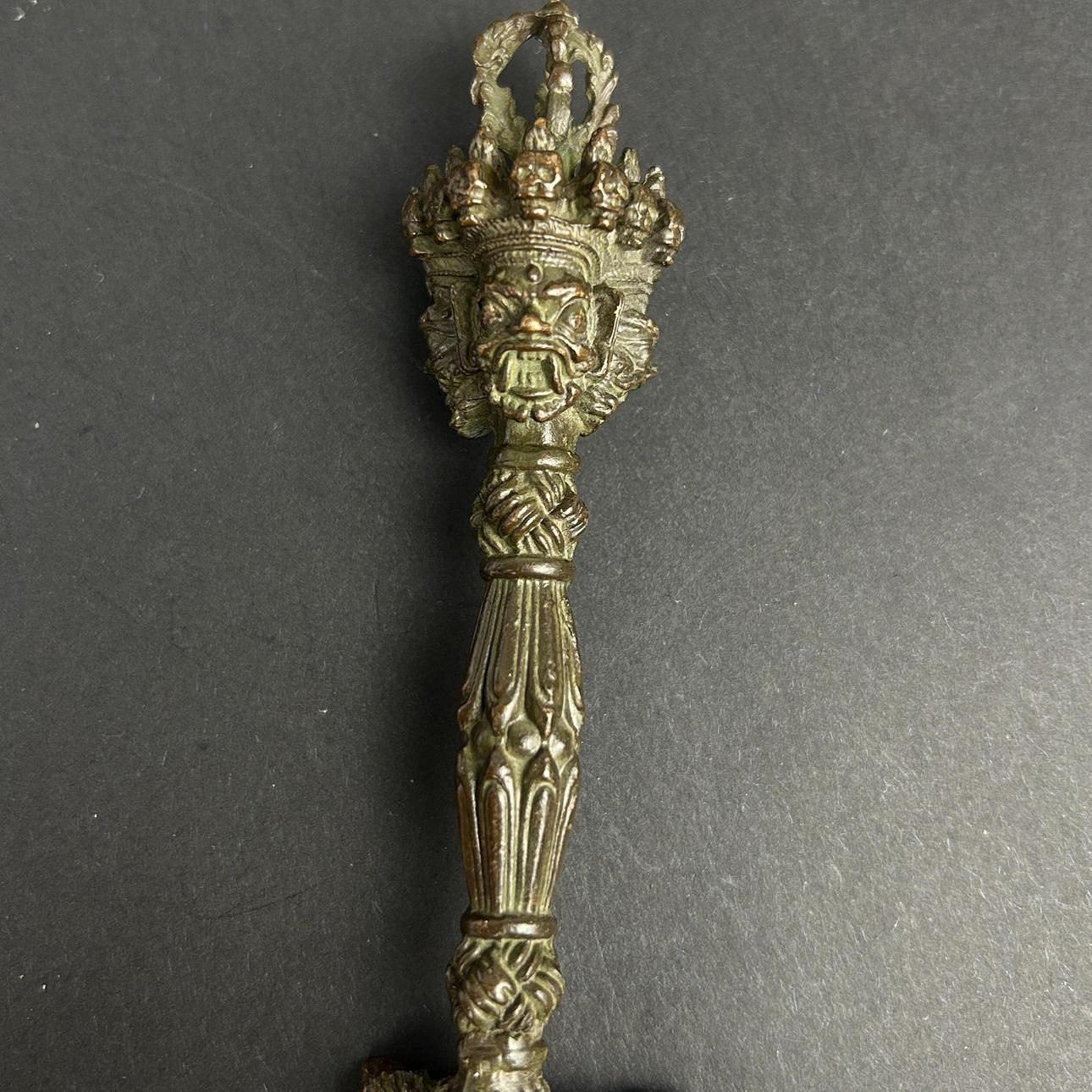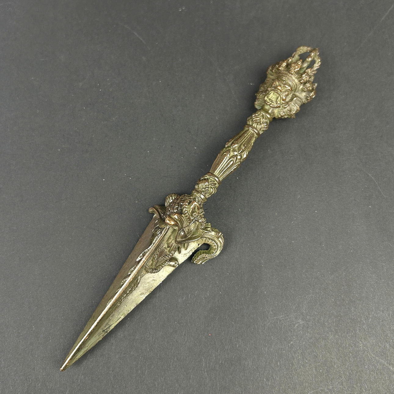 4902842. A TIBETAN BRONZE PHURBA.