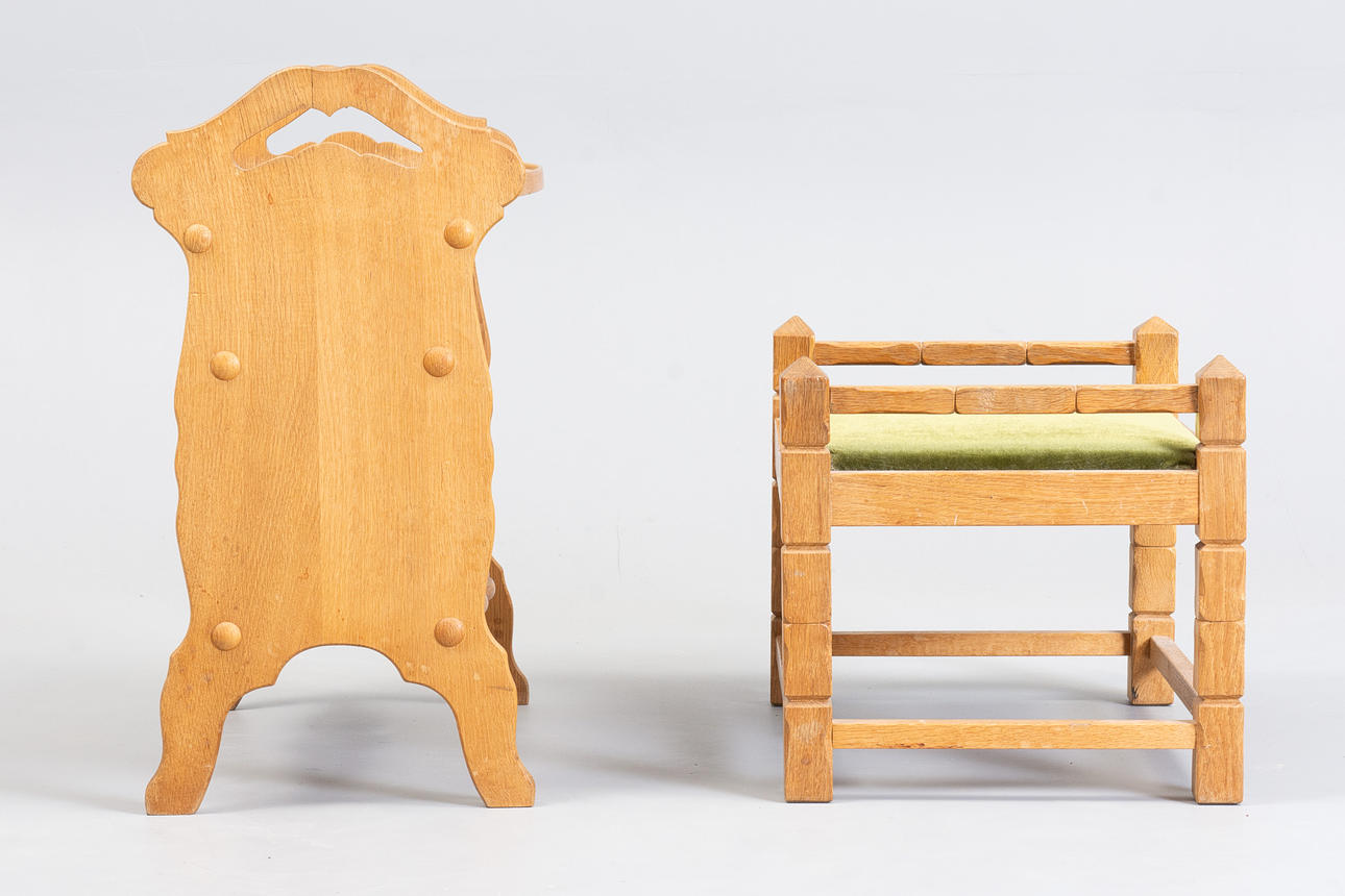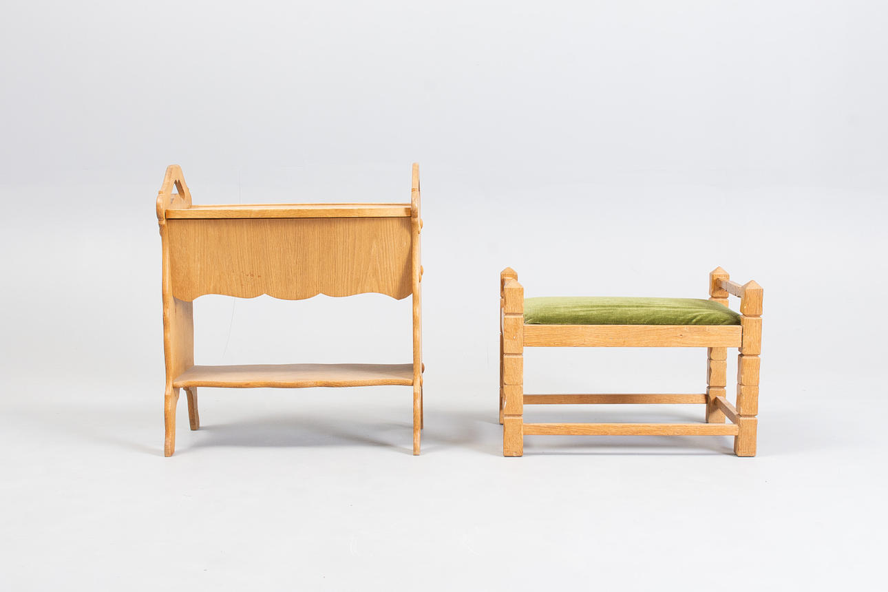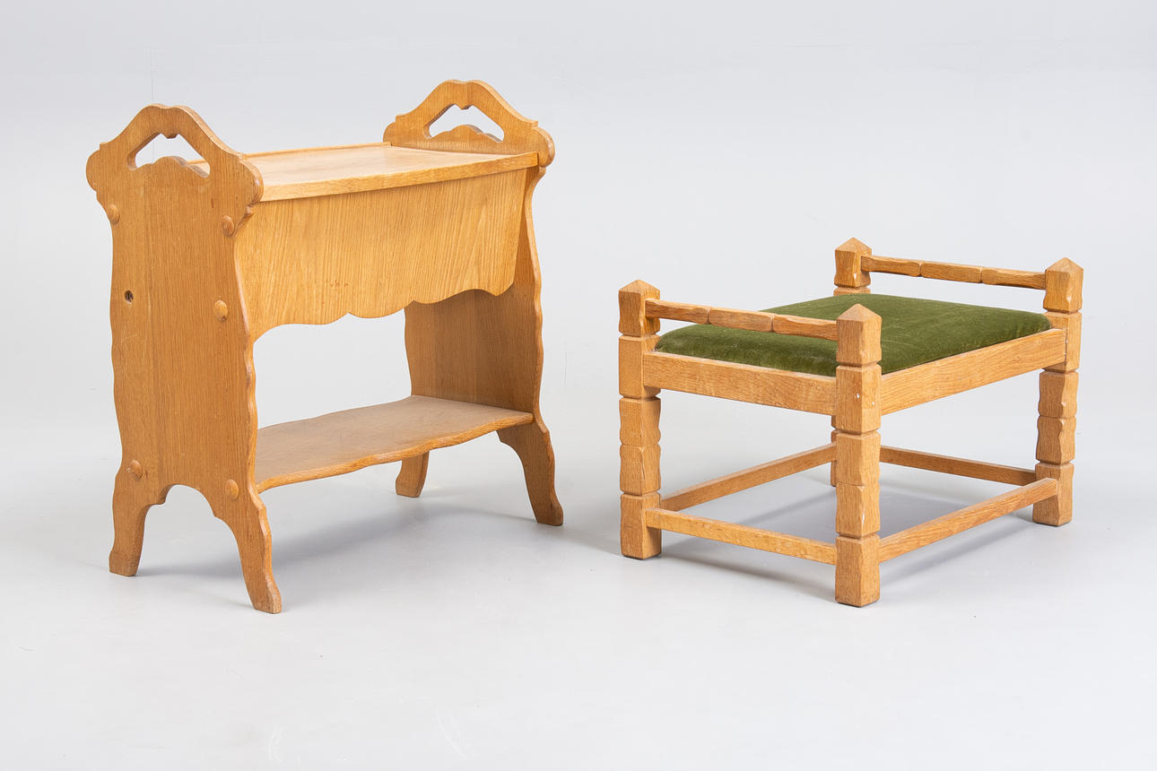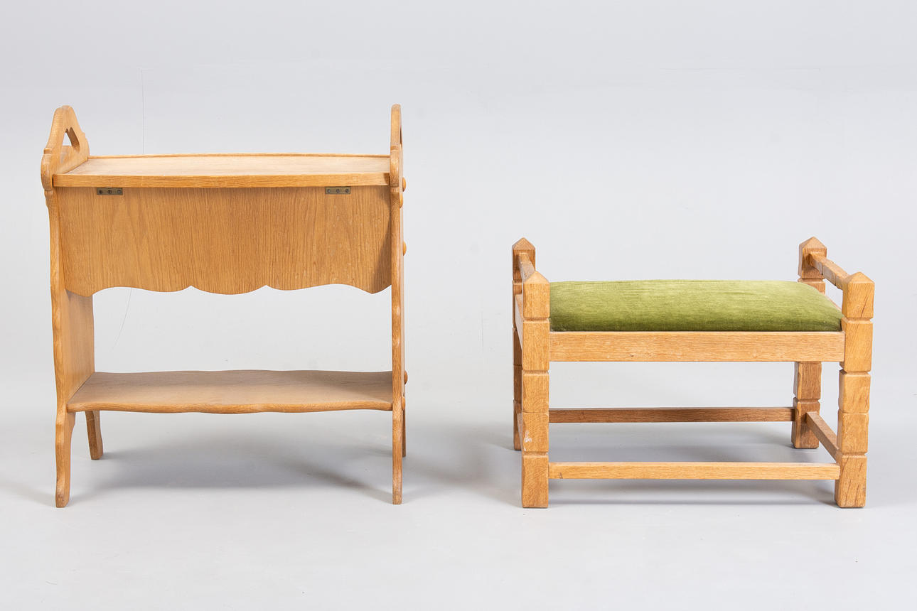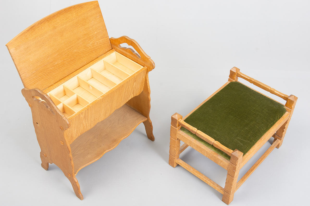 4903437. OAK STOOL AND SEWING TABLE. Danish cabinet maker.