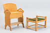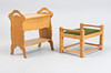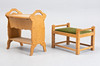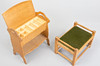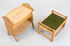 From the mid-20th century. The stool is upholstered in green mohair. The sewing table has removable drawer.