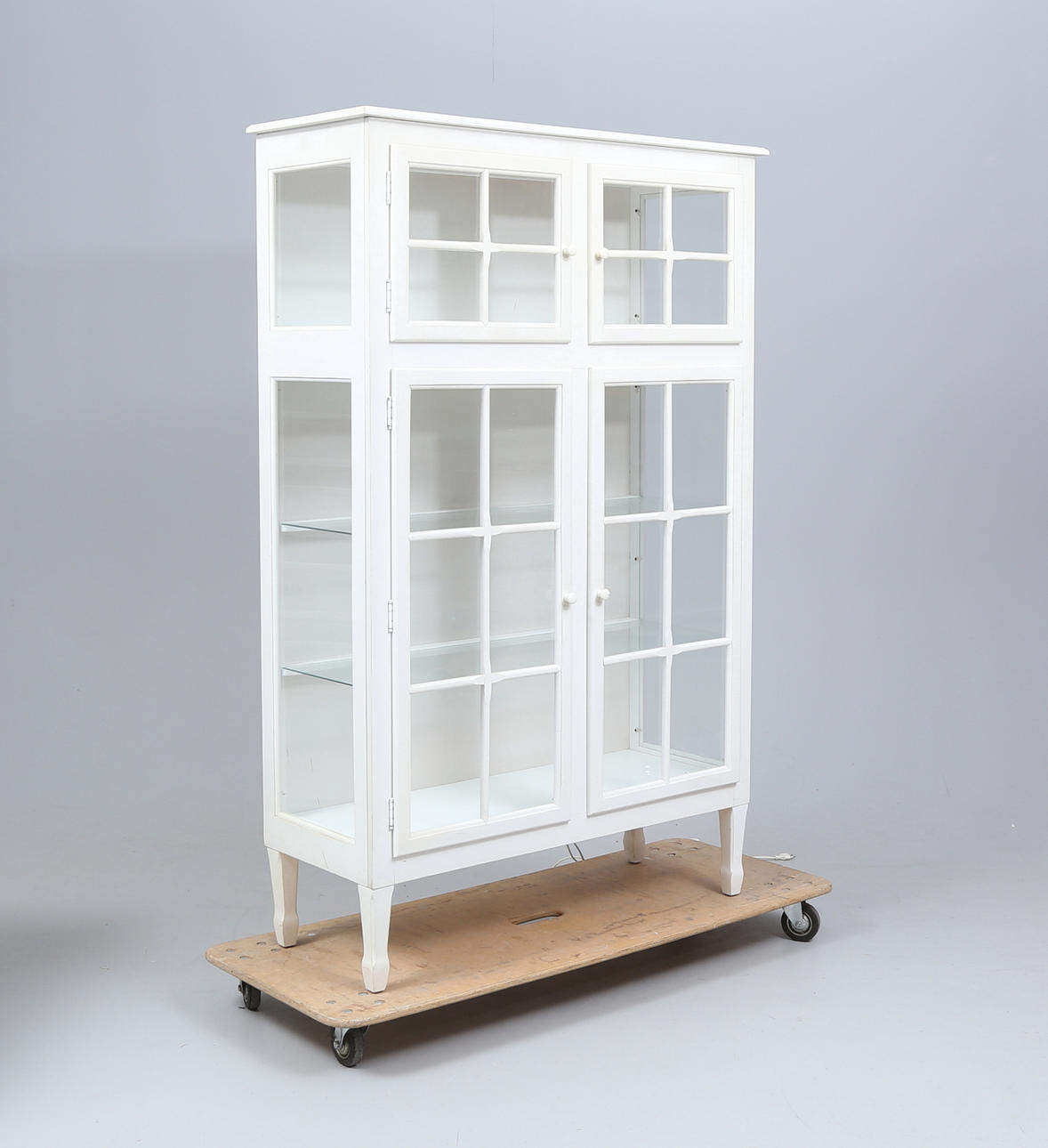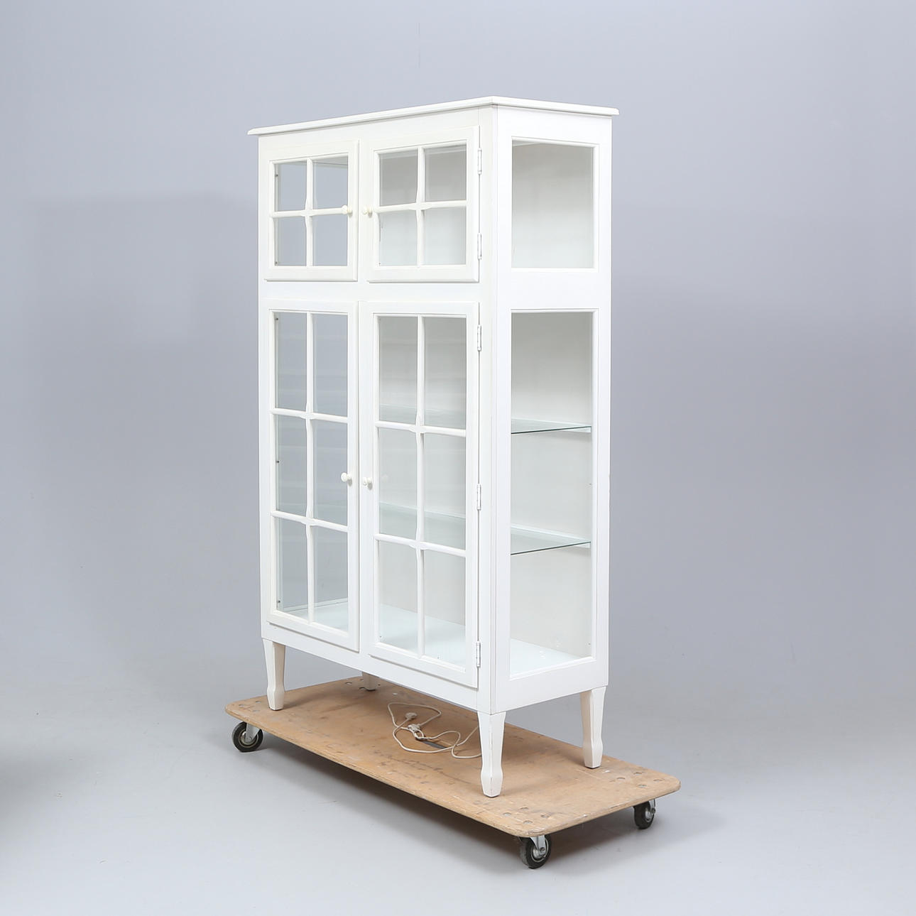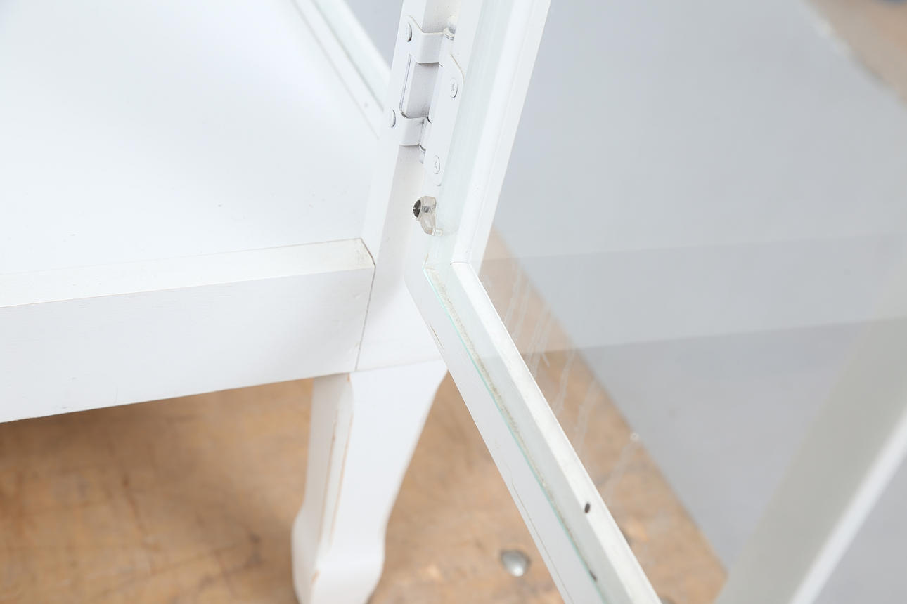 Normal wear and tear, less chafing. Stains. Plastic plops with damage. One glass pane in the door with a slide at the top.