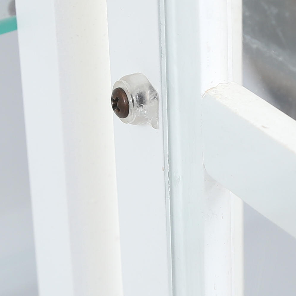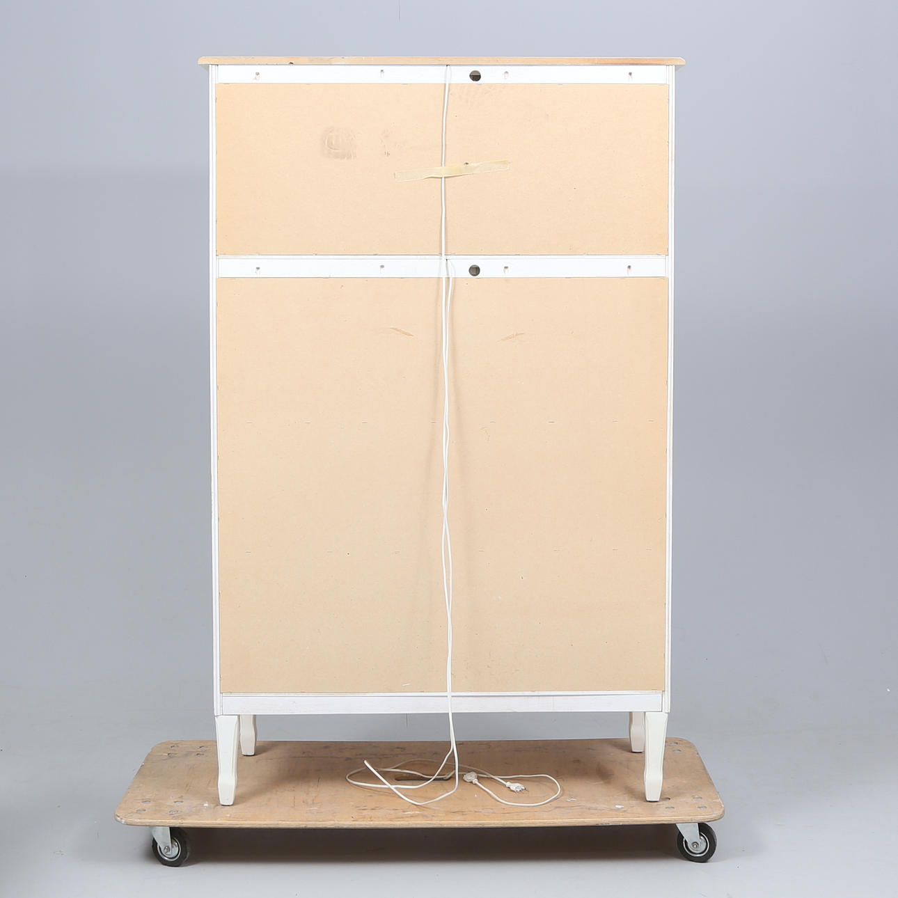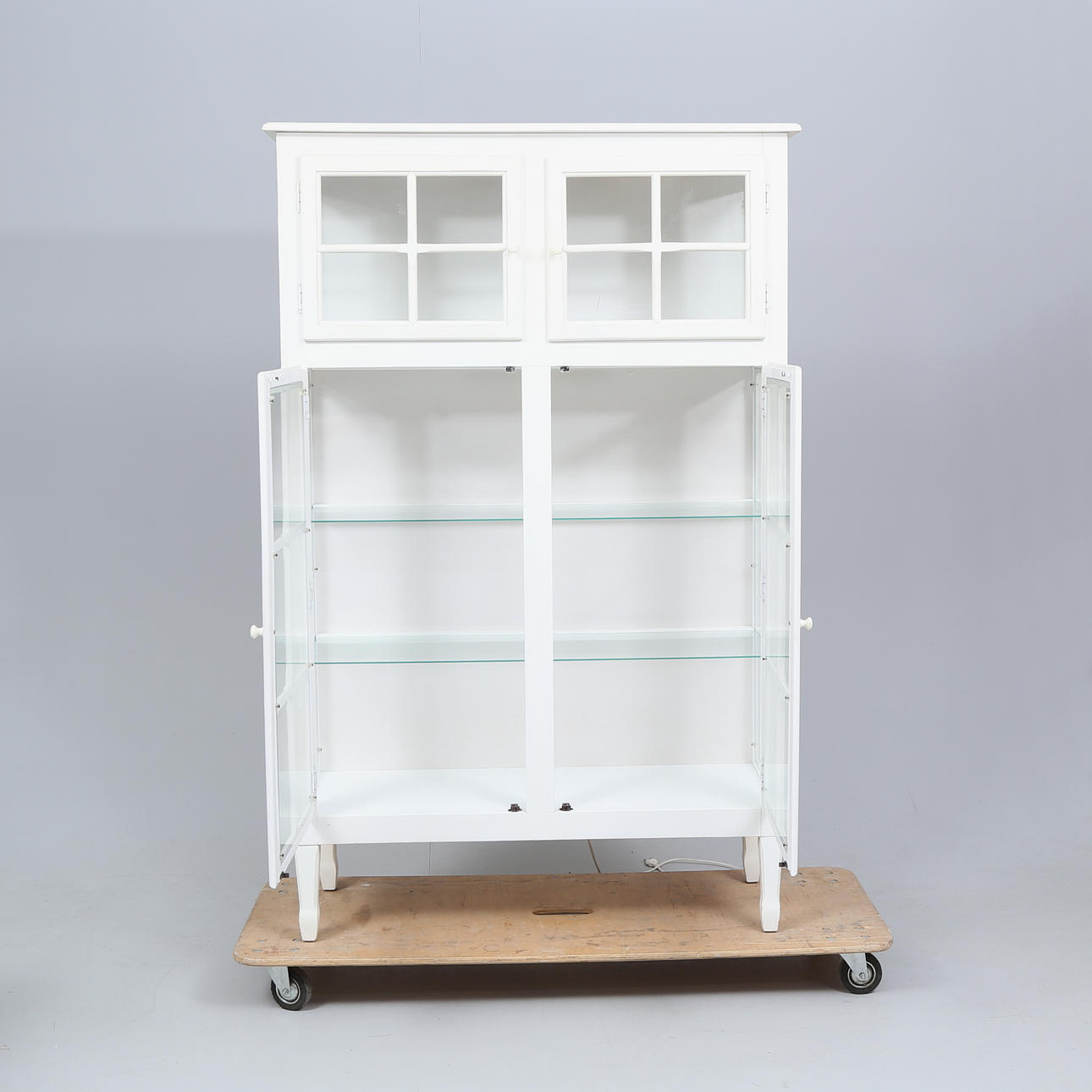 Normal wear and tear, less chafing. Stains. Plastic plops with damage. One glass pane in the door with a slide at the top.