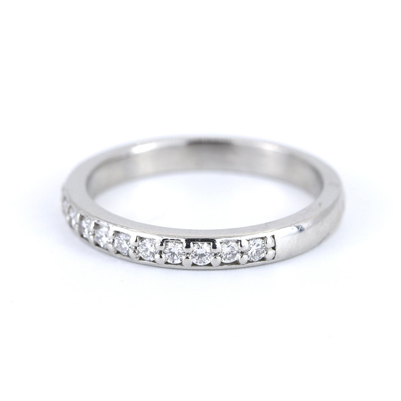 An 18ct white gold ring set with diamonds. Dia. total: 0.11ct approx. Colour: G-H. Clarity: SI.