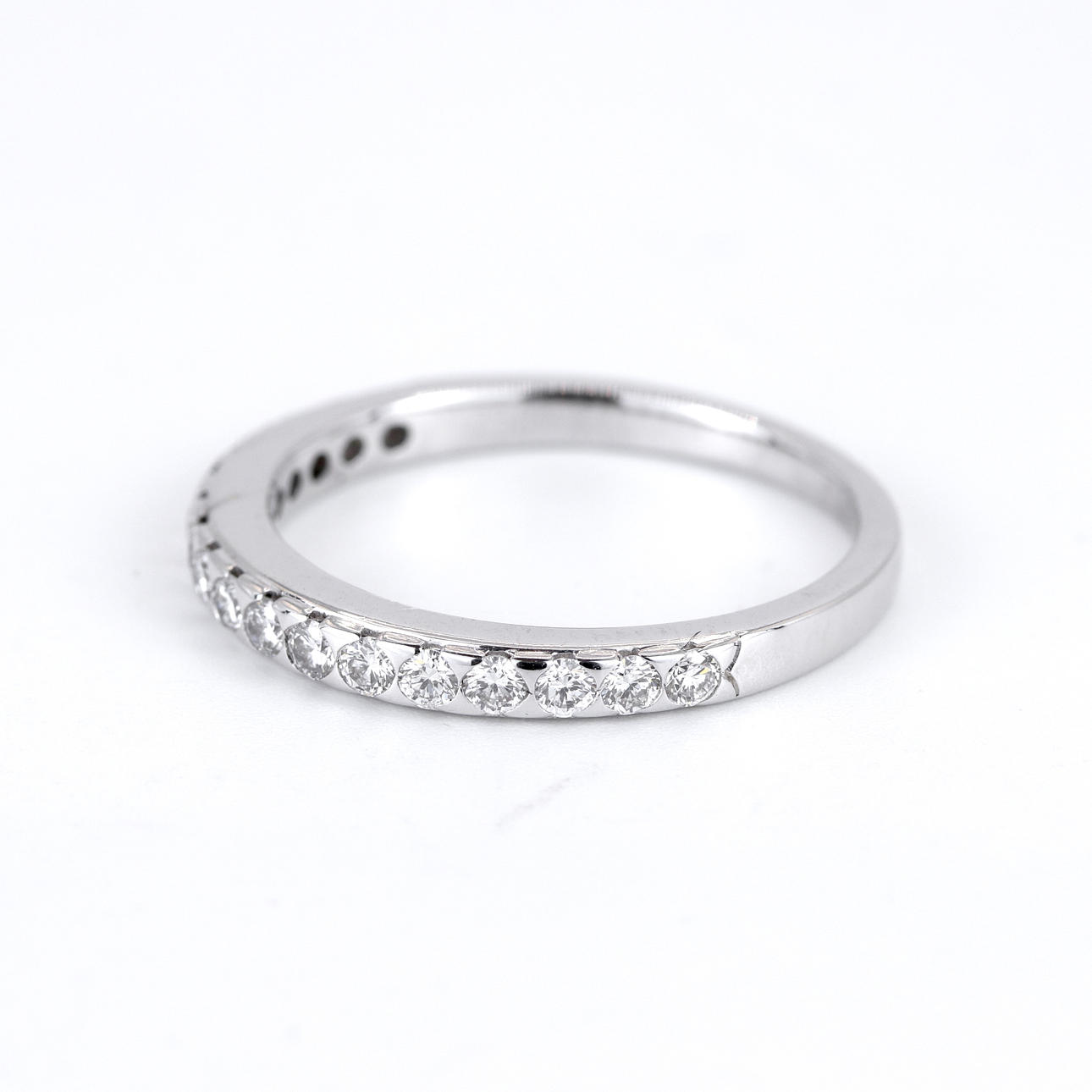 An 18ct white gold diamond set half eternity ring.