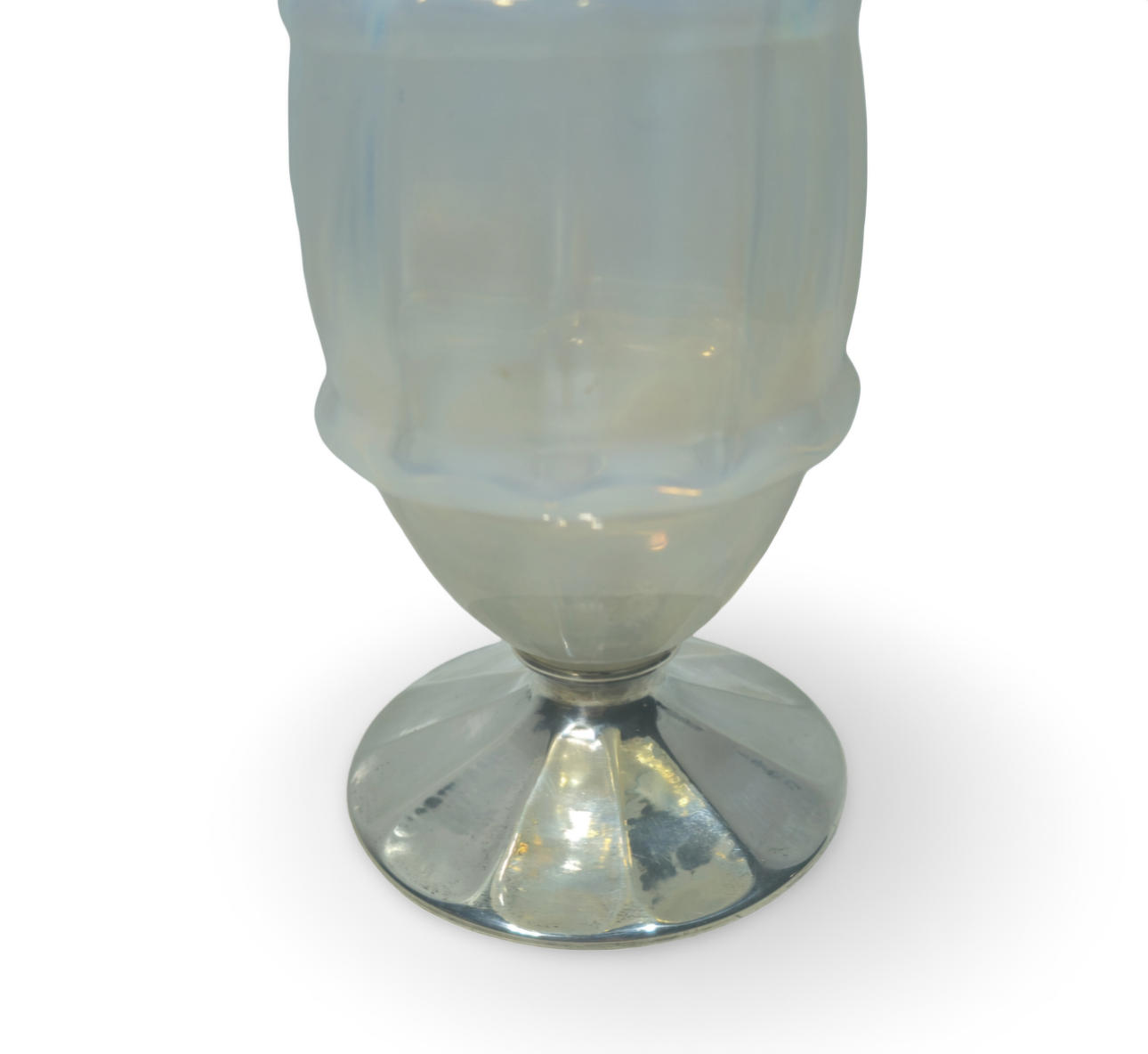 Beautiful vase in blown opaline with finely ribbed silver base.