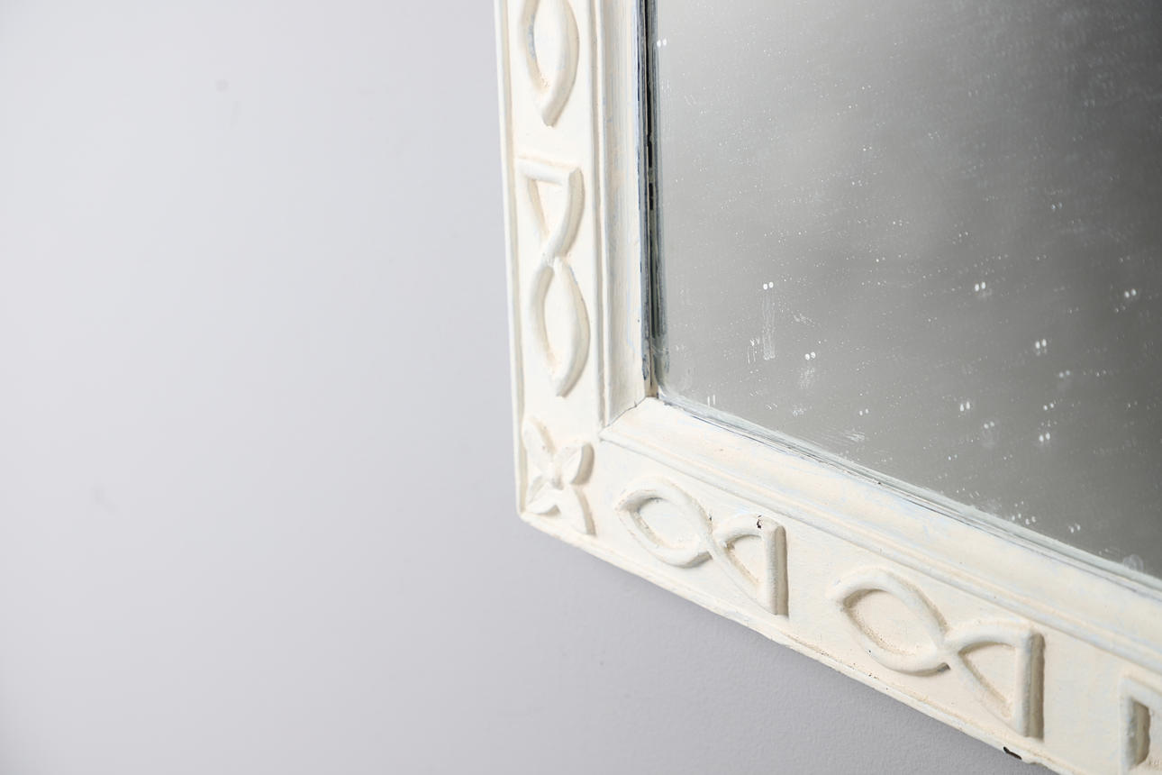 Rustic white paint with fish motif, W60 x H80.5cm.
