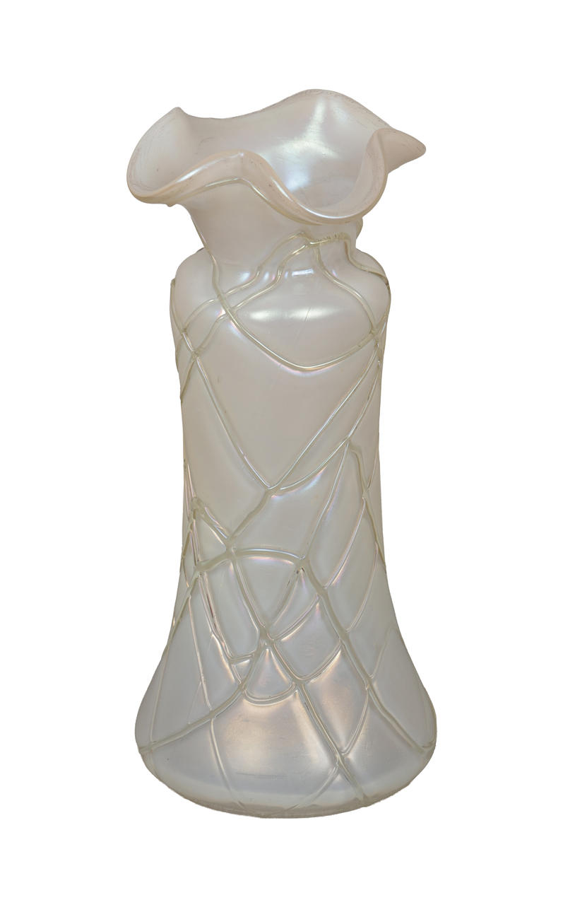 The iridescent glass vase measuring 17cm height.
