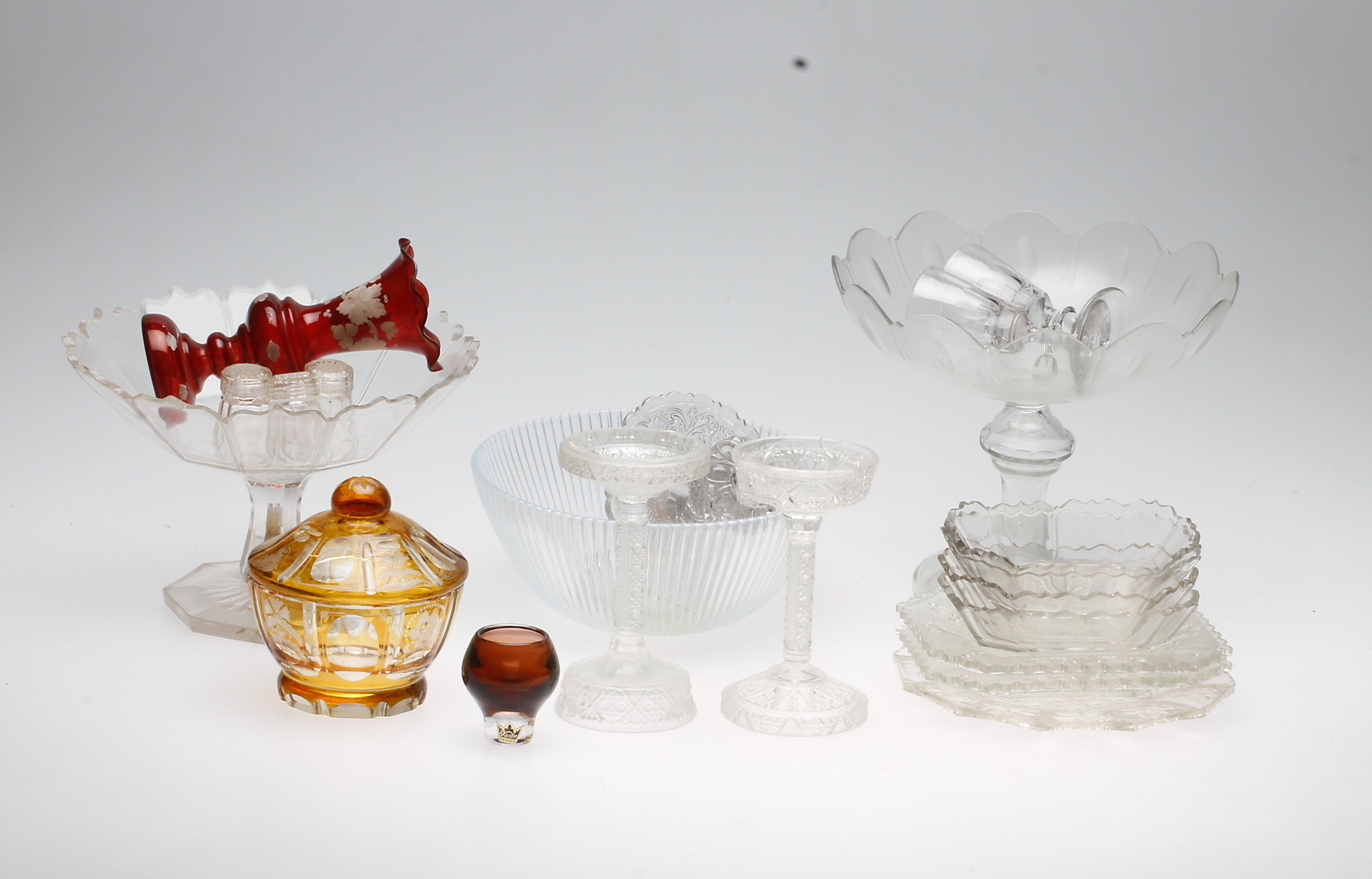 490564. GLASS OBJECTS, 21 parts, 1900s.