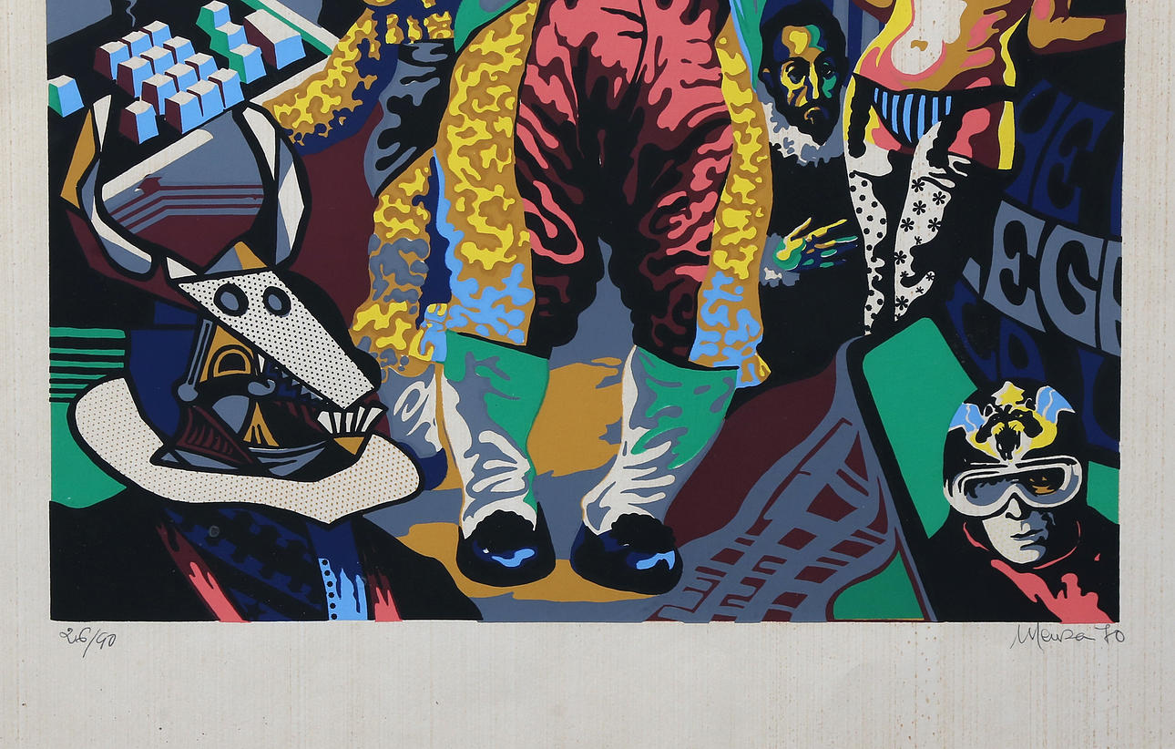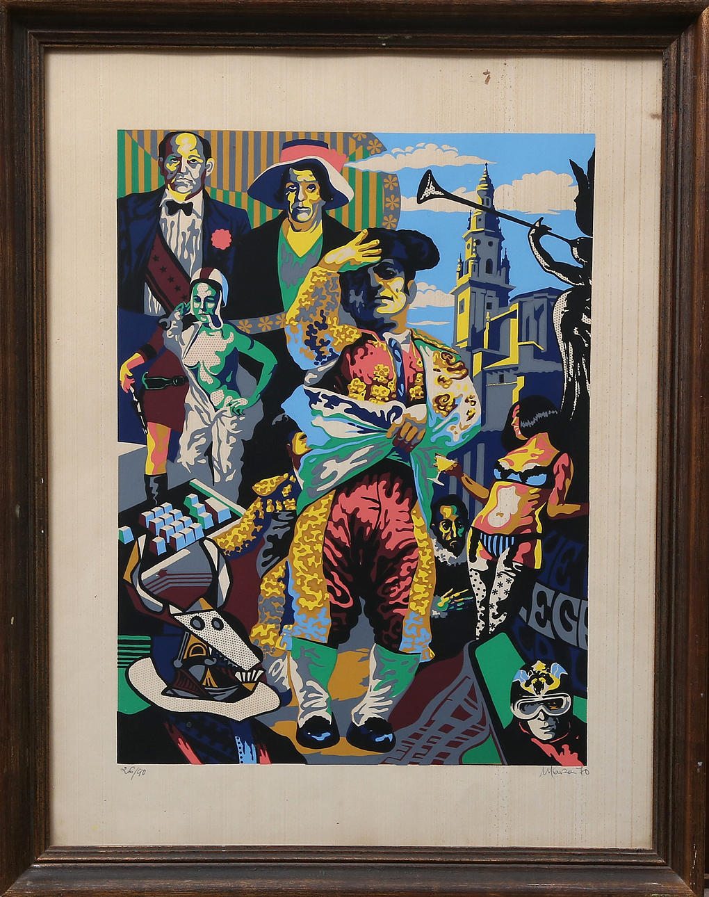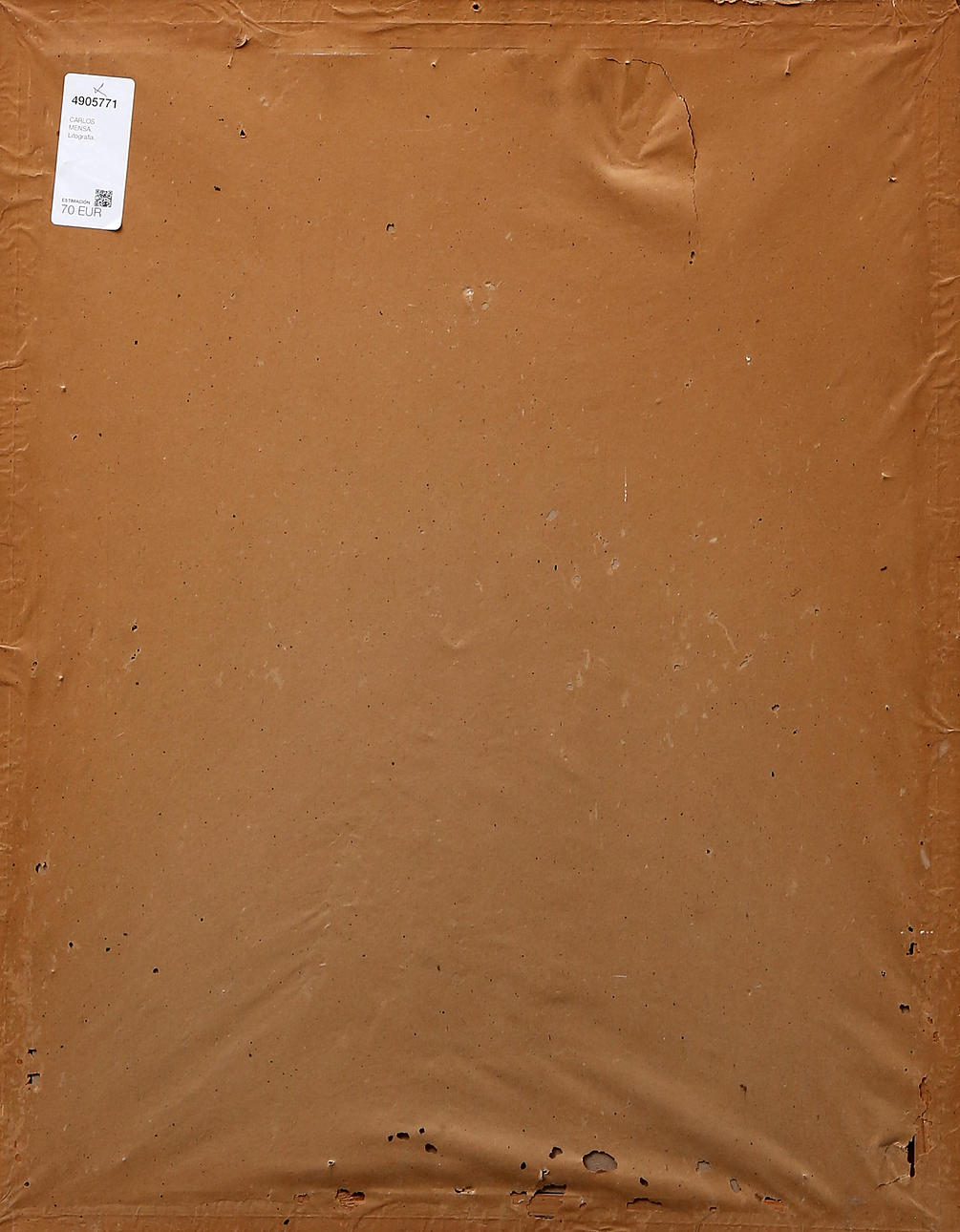 Rust and dirt on the paper. Partially gilt wood frame. It has not been examined outside the frame.