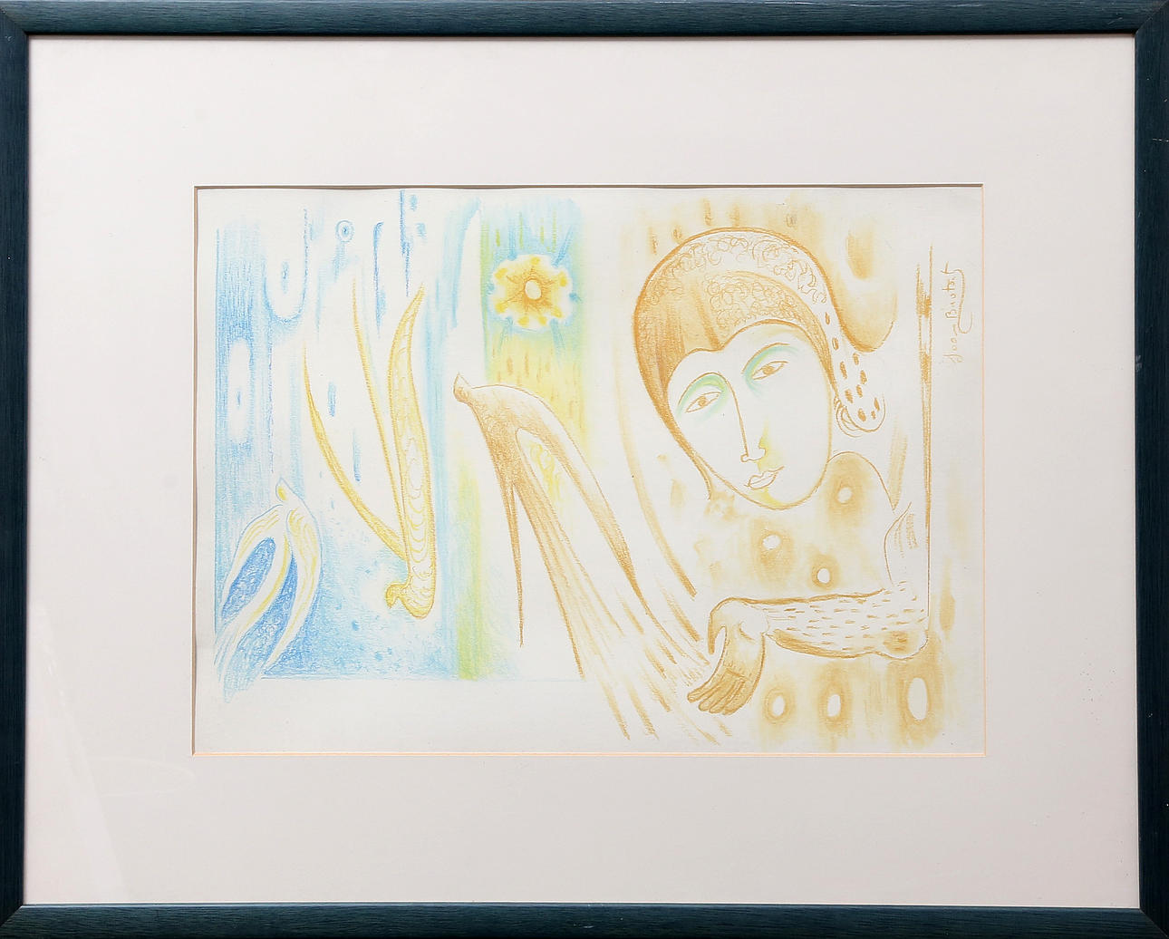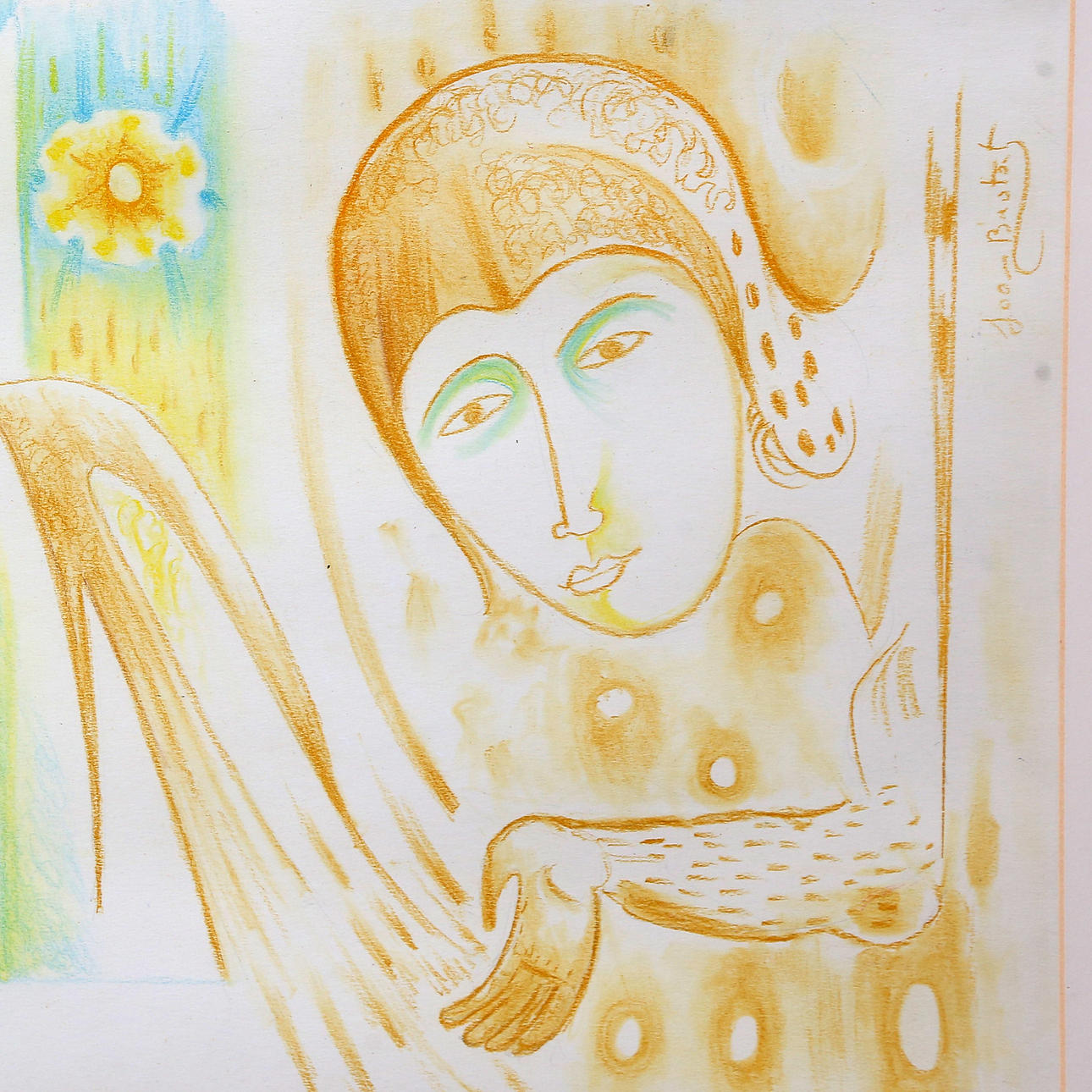 Colour crayons and pencil drawing on paper.