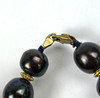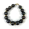 A bracelet of large black cultured pearls 11.5 mm, with 9ct gold clasp and gilt spacers. L. 19 cms.