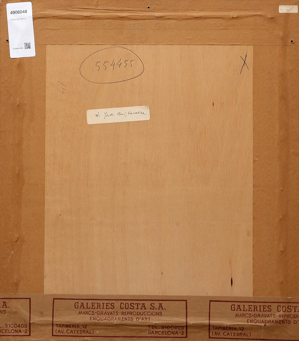 In good condition. Moulded and gilt wood and stucco frame, with flaws.