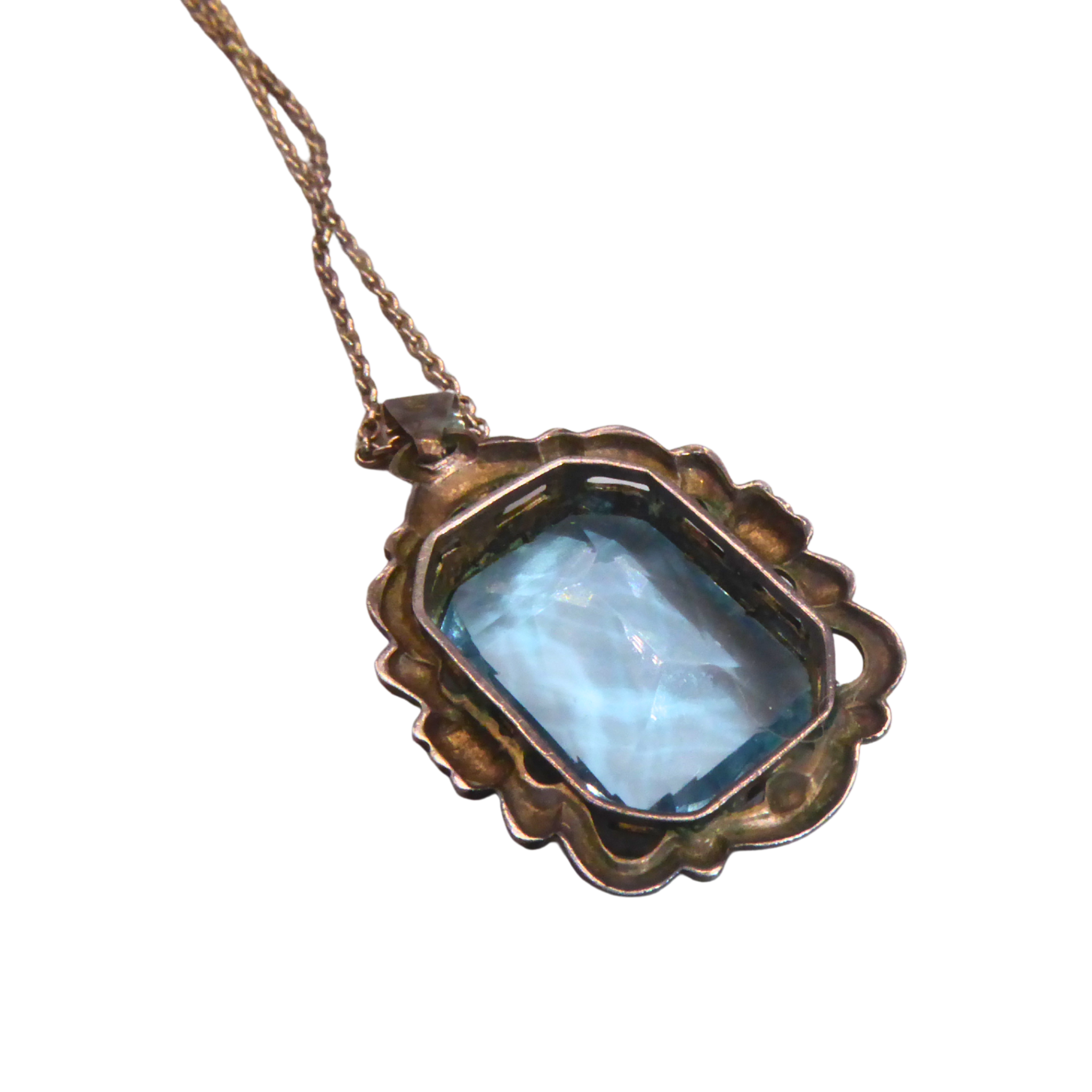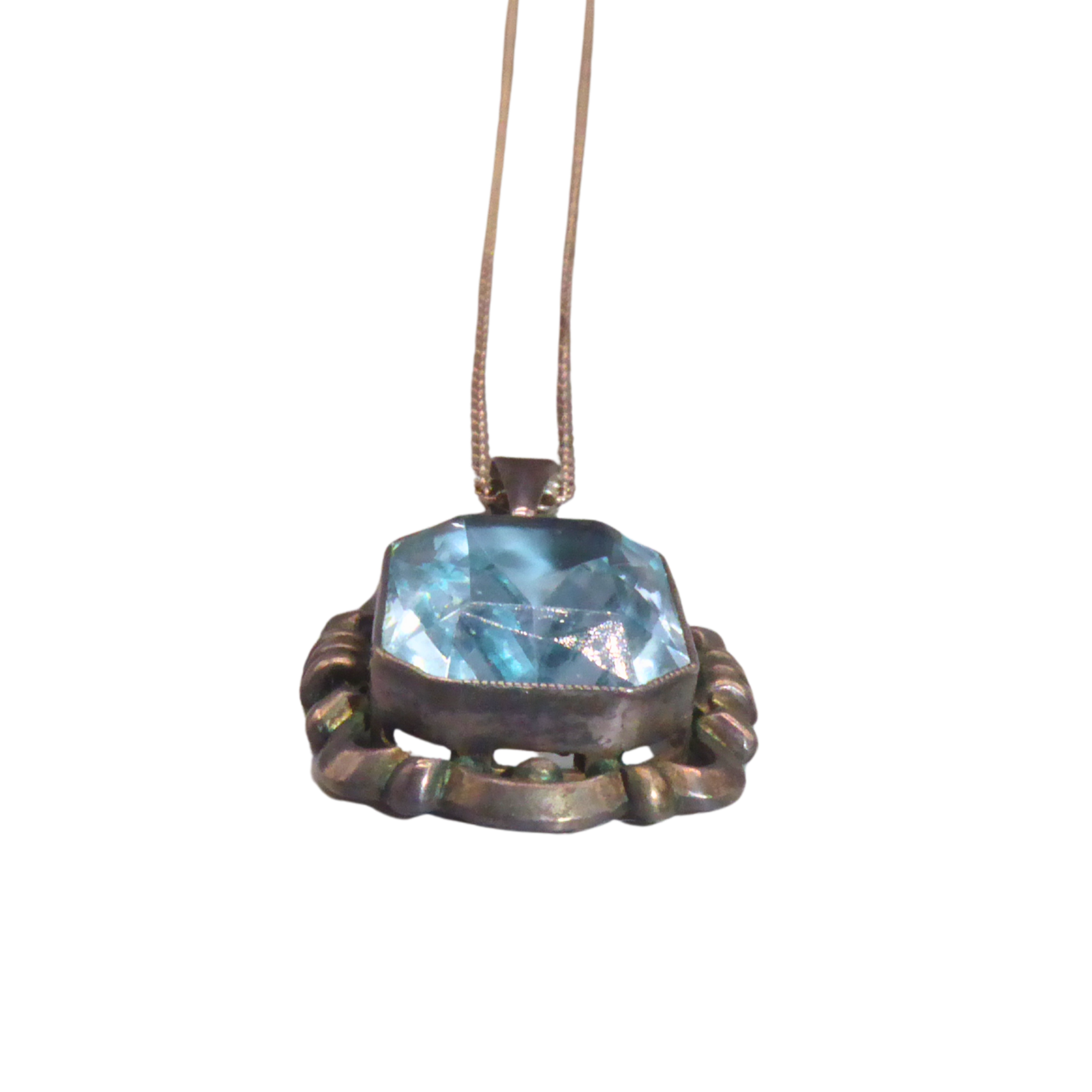 4906078. 835 SILVER NECKLACE WITH EMBEDDED BLUE TOPAZ.
