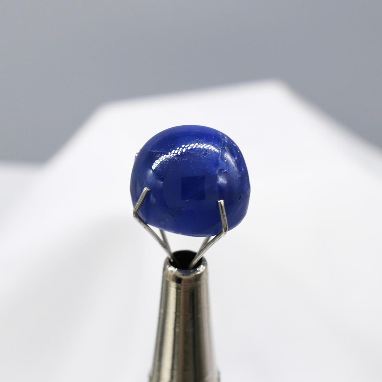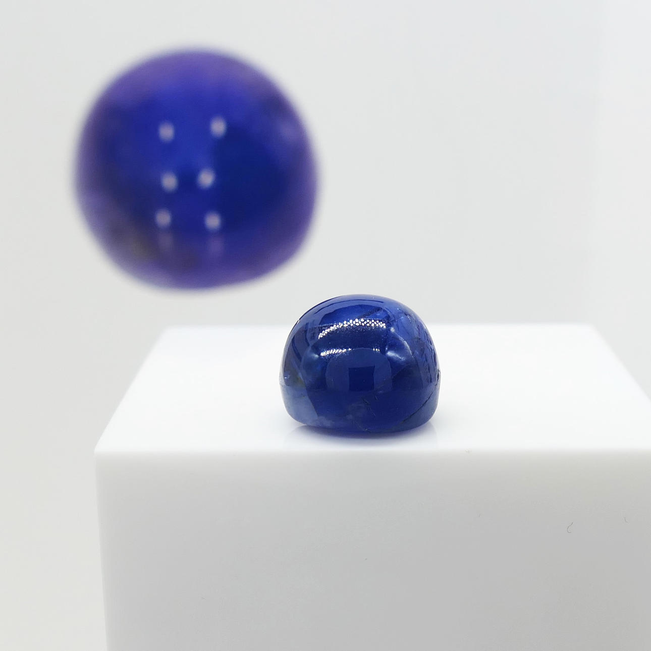 • Sapphire: oval cabochon cut; 9.08 carat; deep blue colour; moderately included