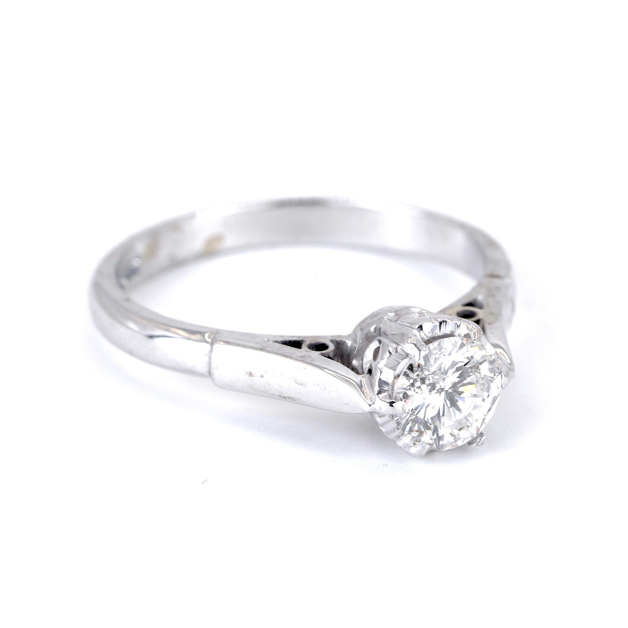 An 18ct white gold solitaire ring set with diamond. Dia. 0.47ct approx. Colour: G-H. Clarity: SI.