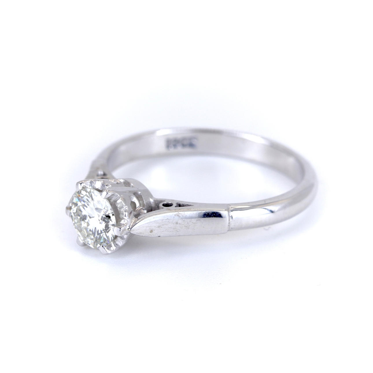 An 18ct white gold solitaire ring set with diamond. Dia. 0.48ct approx. Colour: G-H. Clarity: SI.