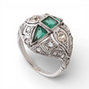 Platinum and 18K white gold, old brilliant, crowned rose and rose cut diamonds, approx. 0.75 cts., and emeralds simulant. Size 10/50. 5.9 gr.