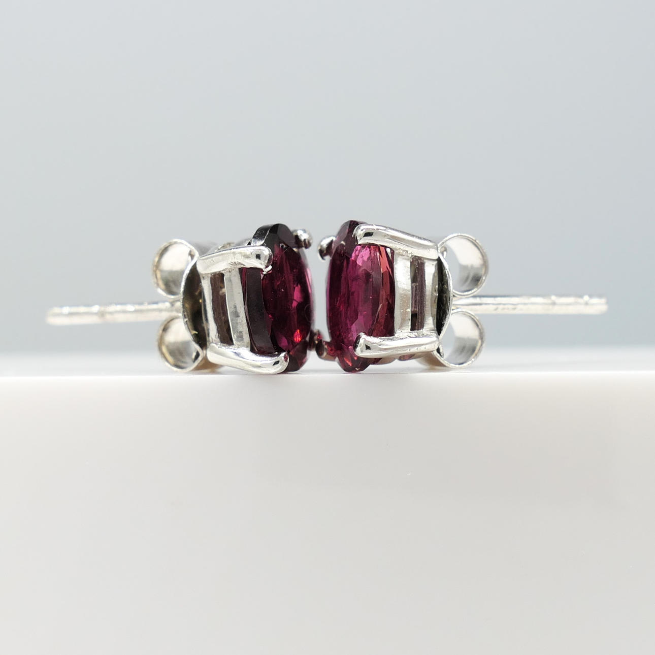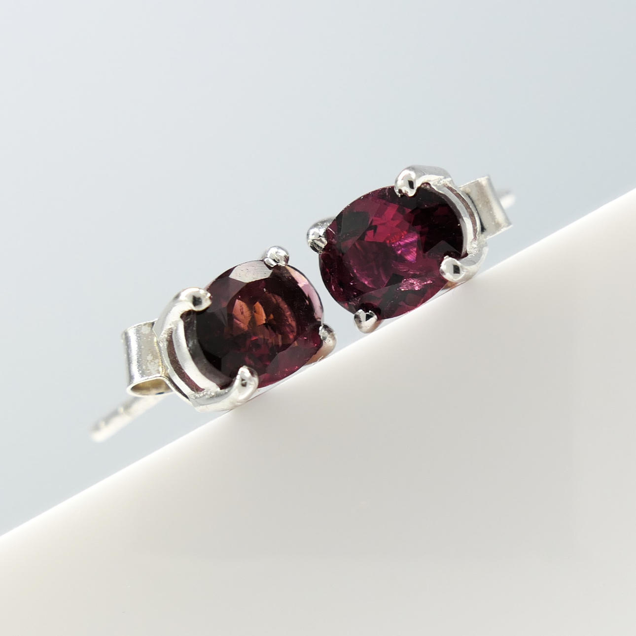 Studs: 925 silver, claw-set; butterfly backs; weight 1.3 grams.