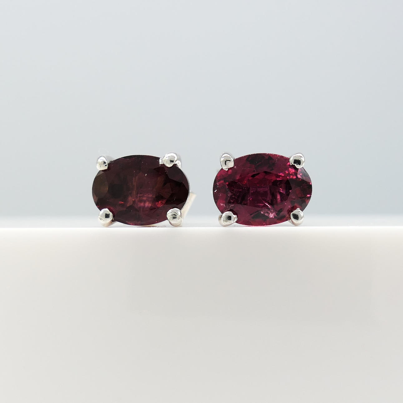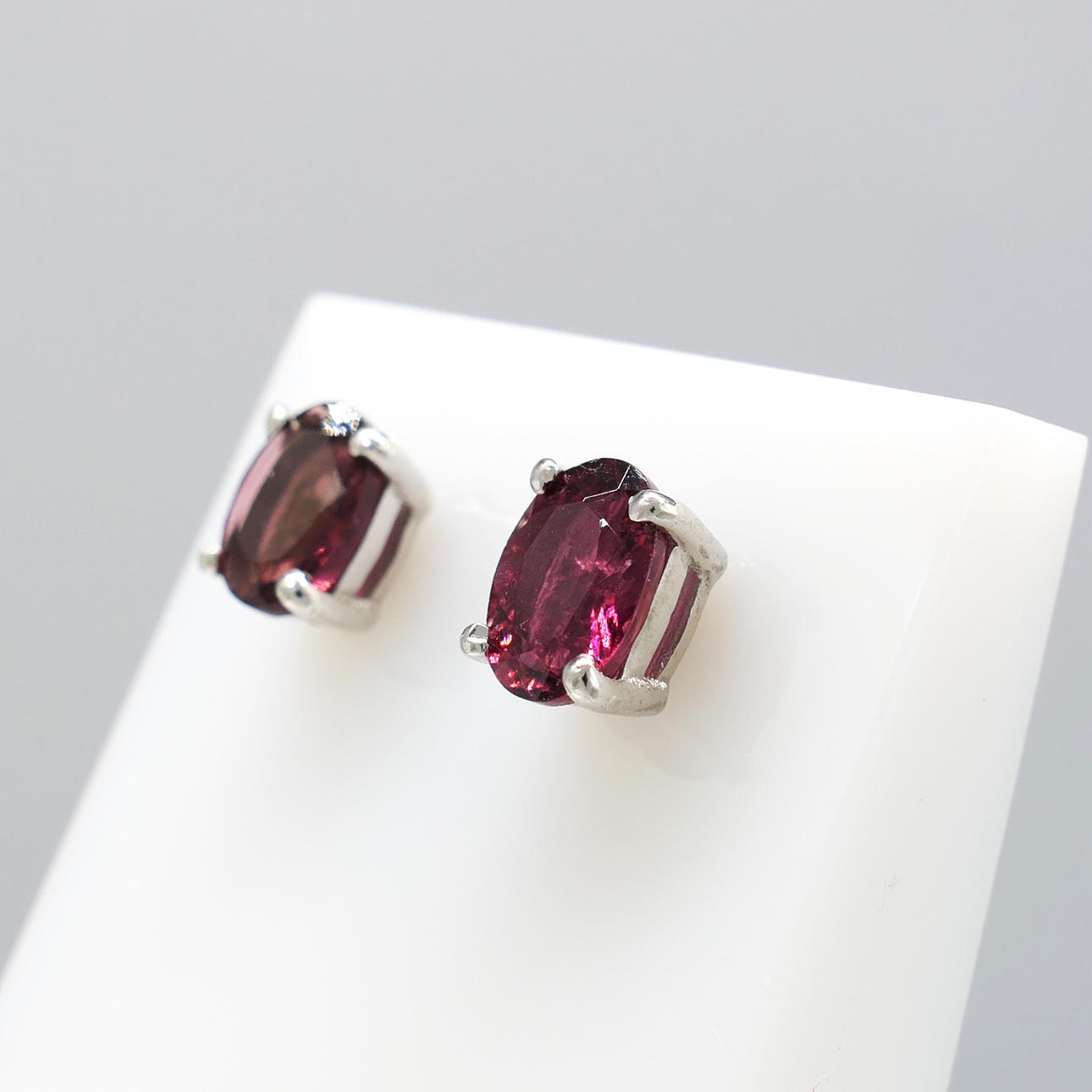 Gemstones: natural tourmaline; oval-cut; 0.70ct total approx; 6 x 4mm each; rich dark pink tone