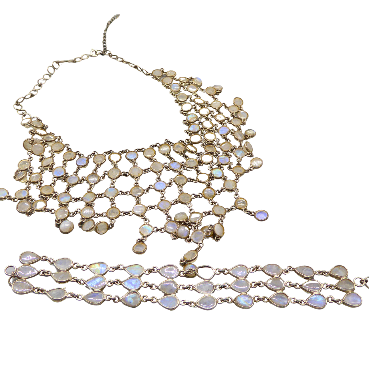 4908338. 925 SILVER MOONSTONE NECKLACE WITH MATCHING BRACELET.