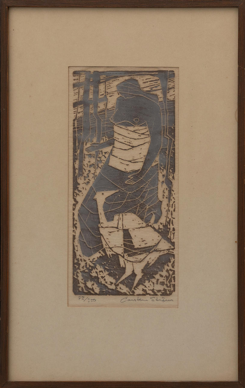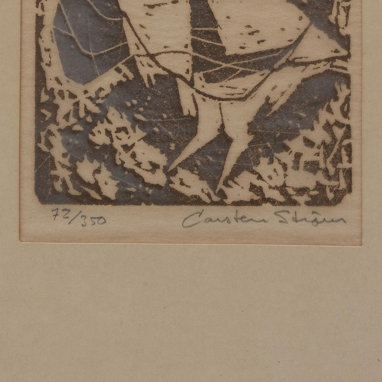 Carsten Ström, woman and bird, nr 72/350, signed, day measure 23,5x11 cm, frame dimensions 38x24 cm