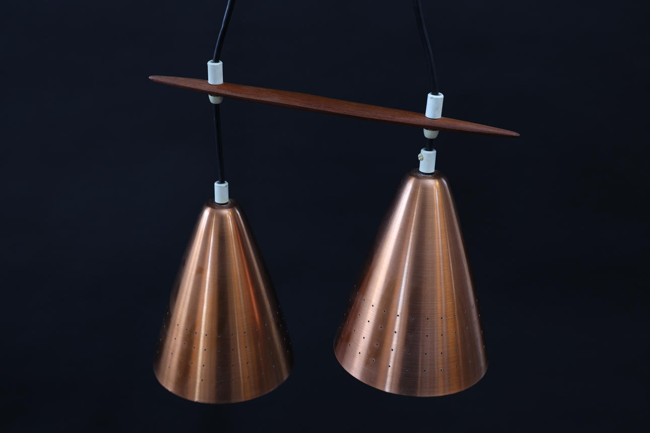 CEILING LAMP, 1950s/1960s Copper & teak.