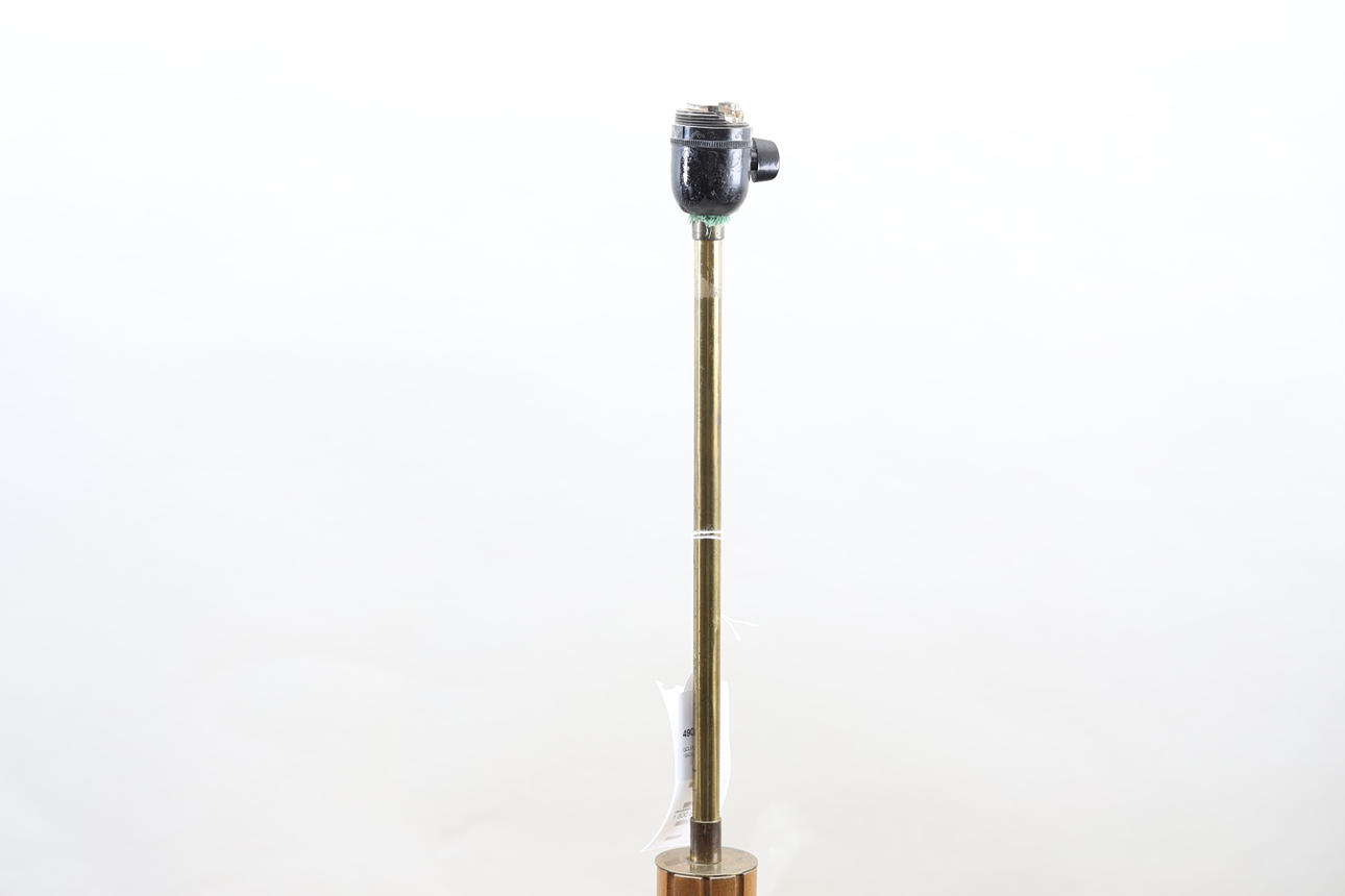 Stained wood and brass. Partially grooved frame, profiled foot. Height 142cm.