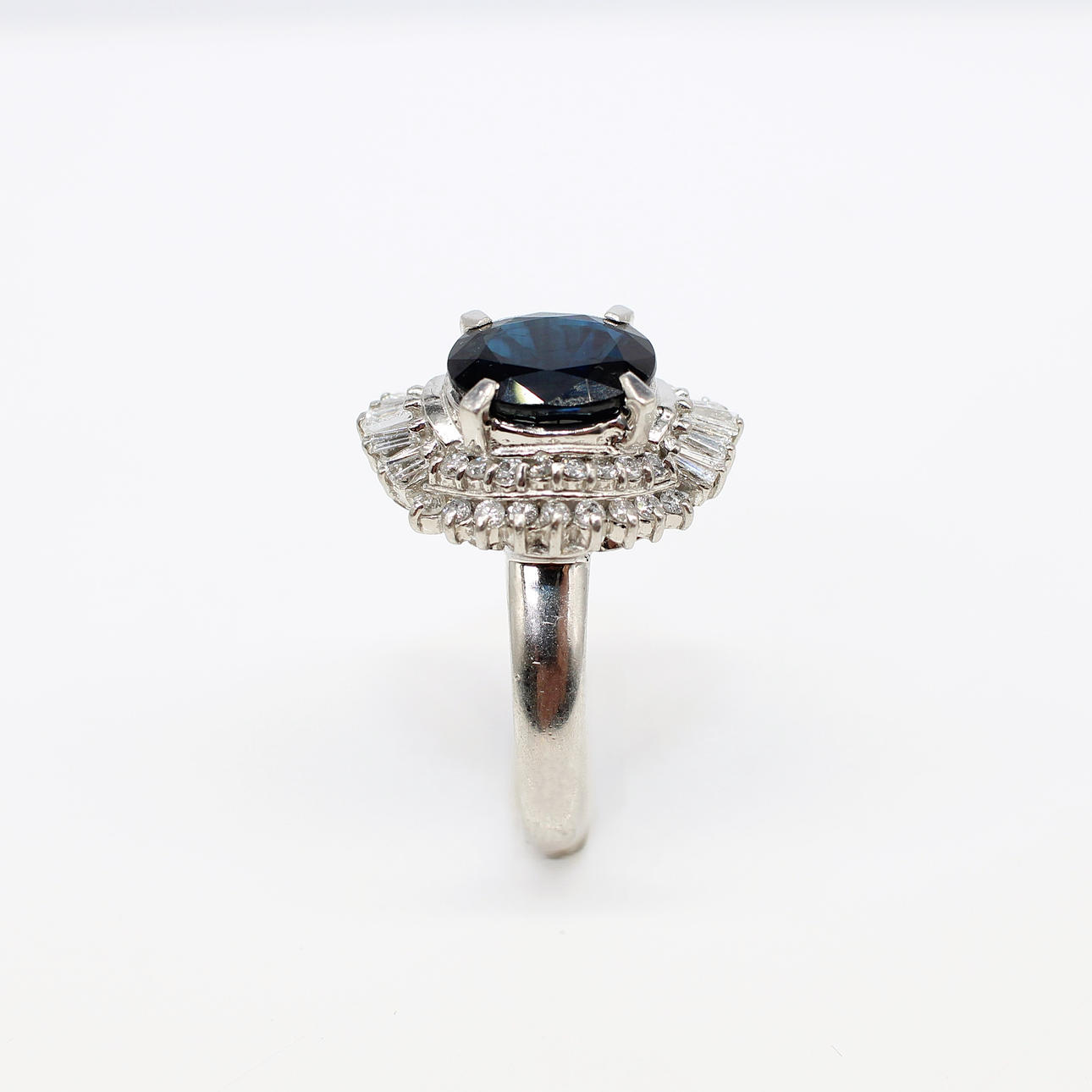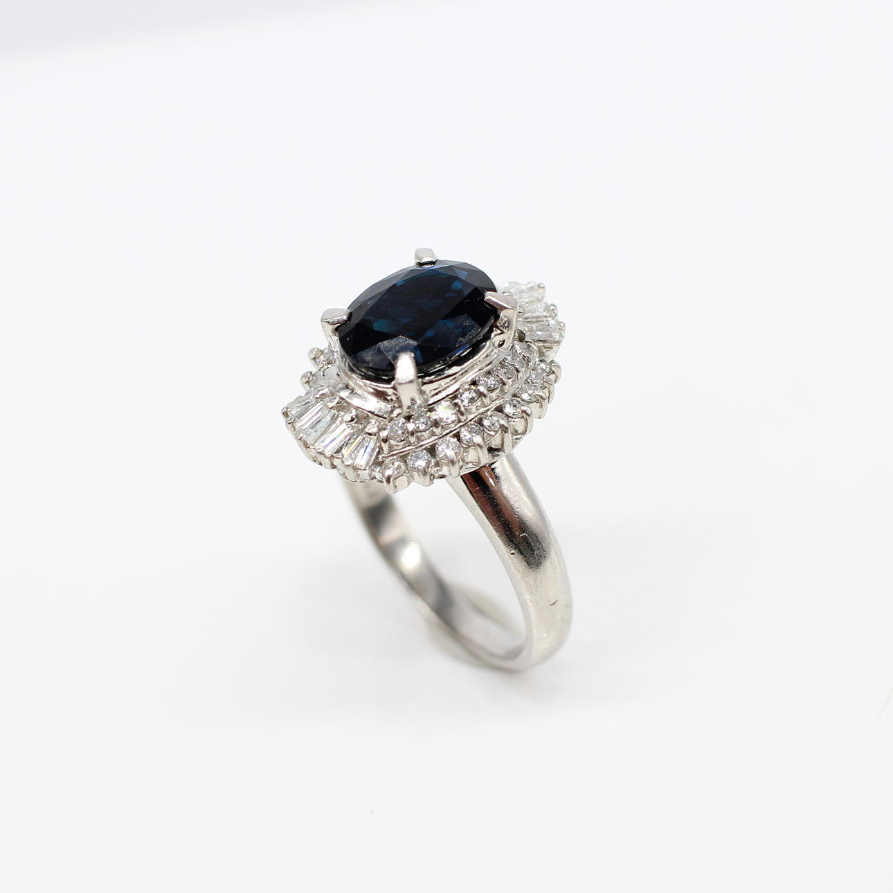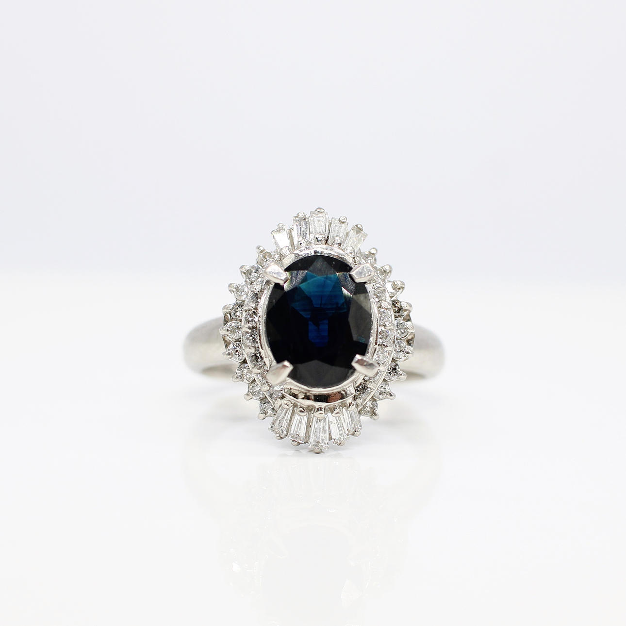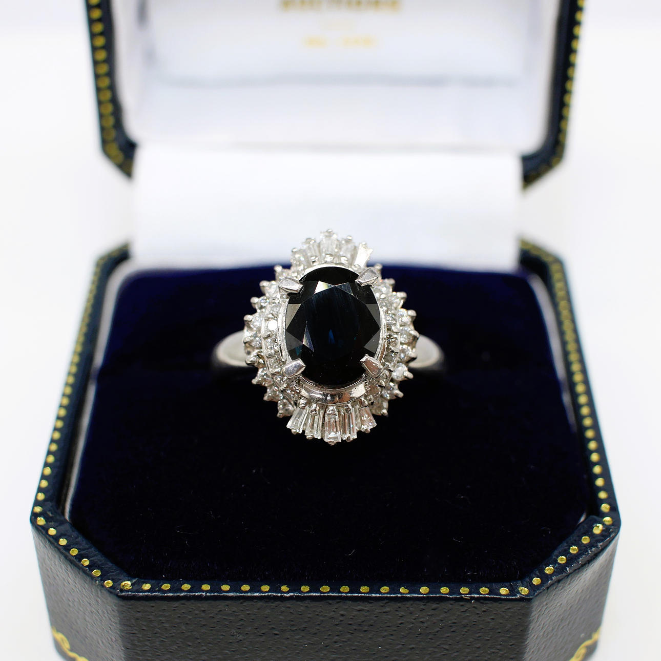 A Stunning, Large Sapphire And Diamond Cluster Ring Set In Platinum (Stamped)