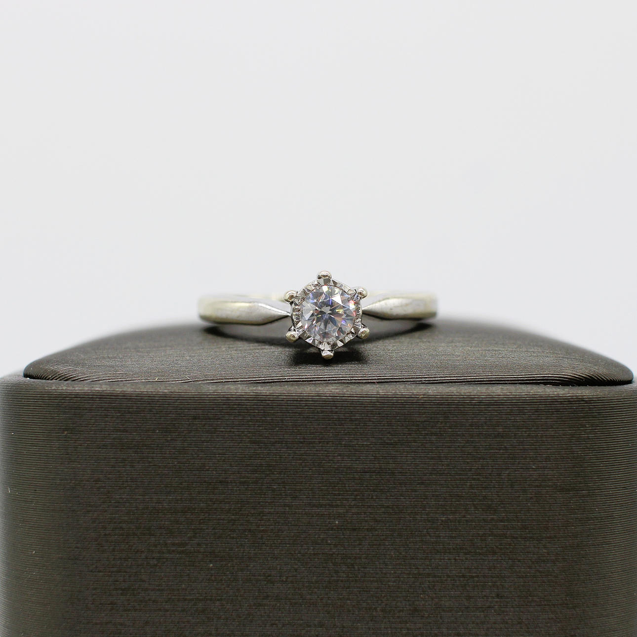 A 9K White Gold (Stamped) Round Brilliant Cut Diamond Solitaire Ring.