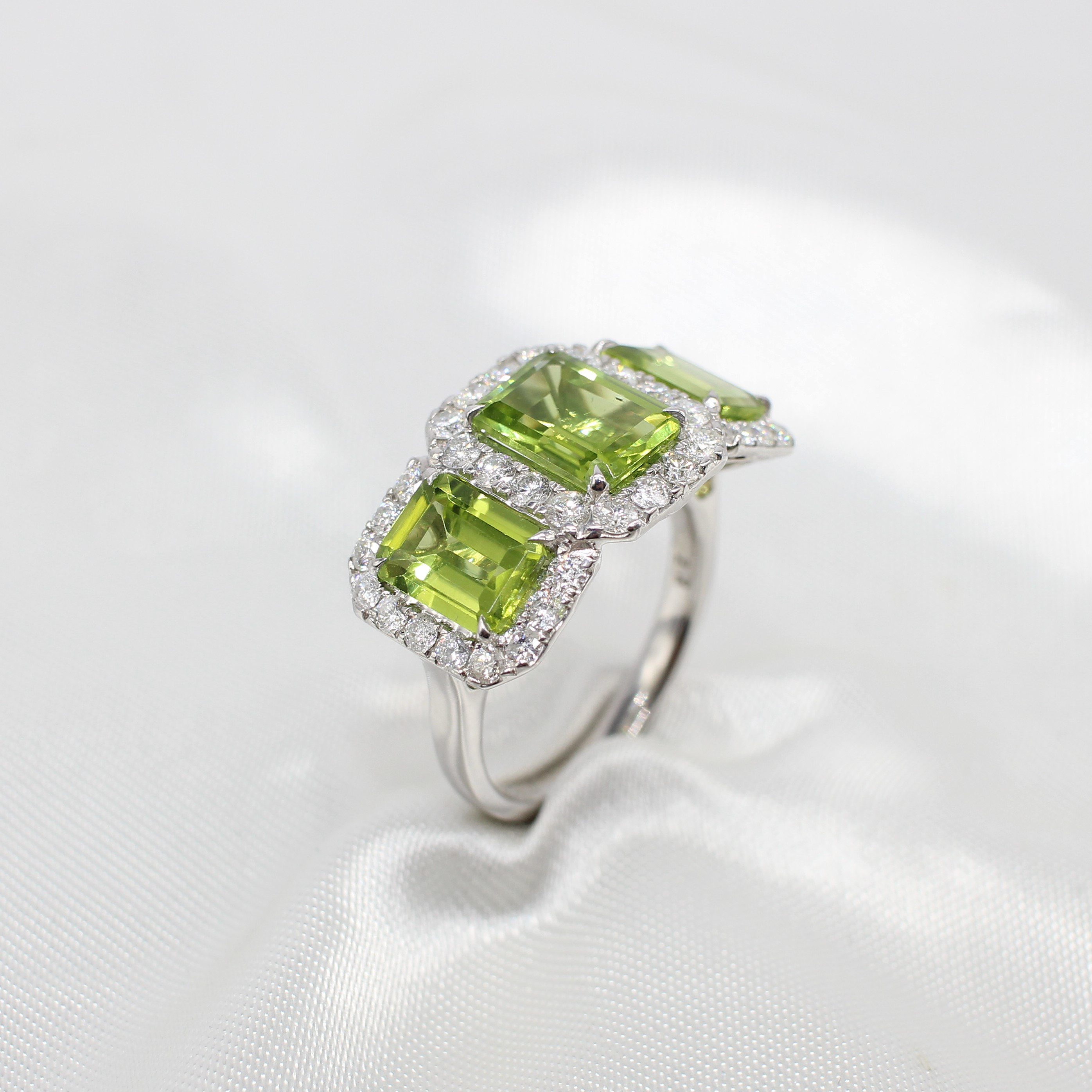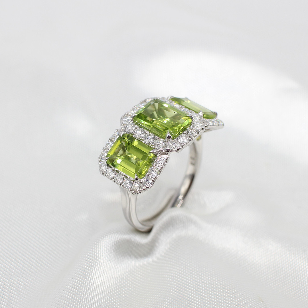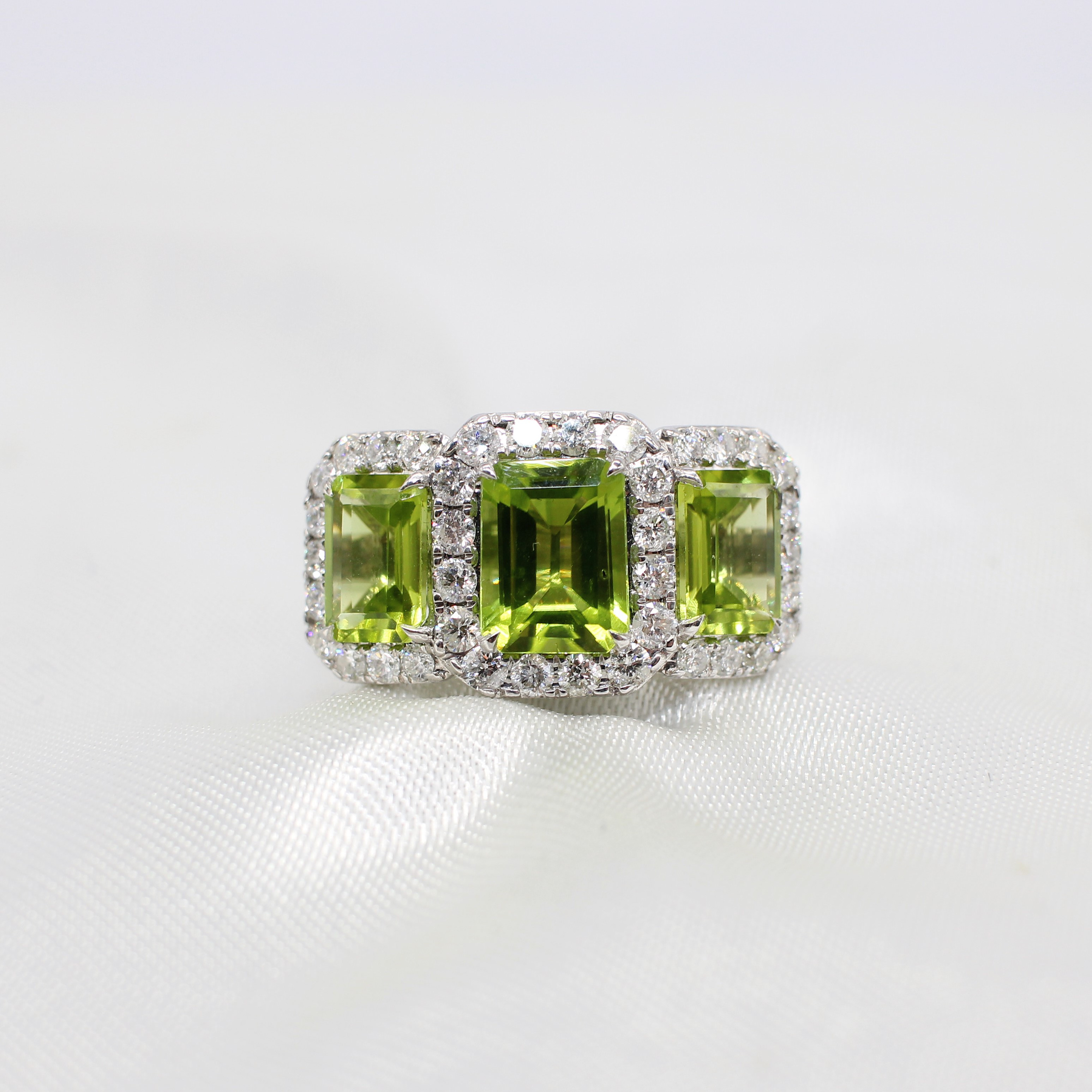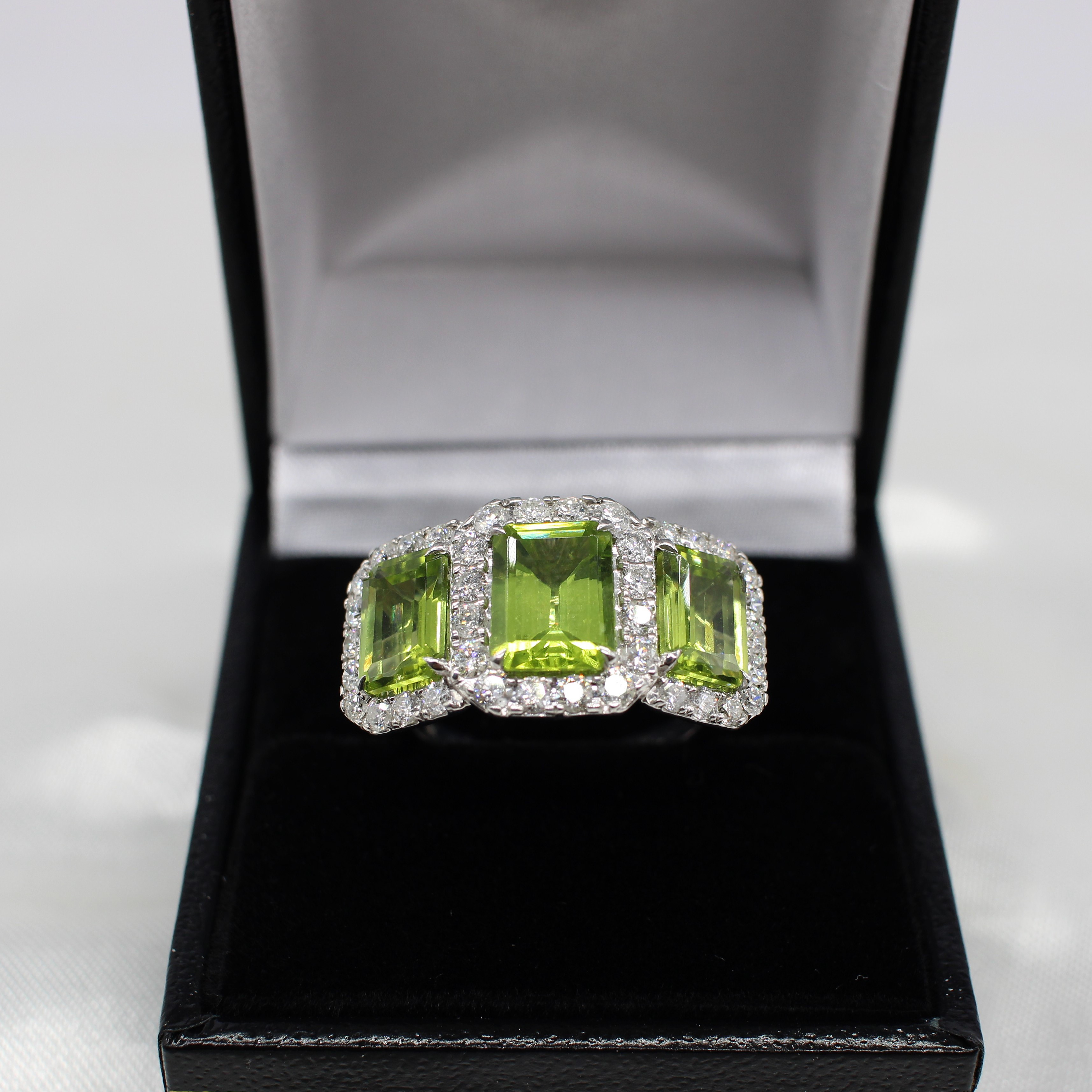 4909221. LARGE PERIDOT & DIAMOND TRILOGY RING.