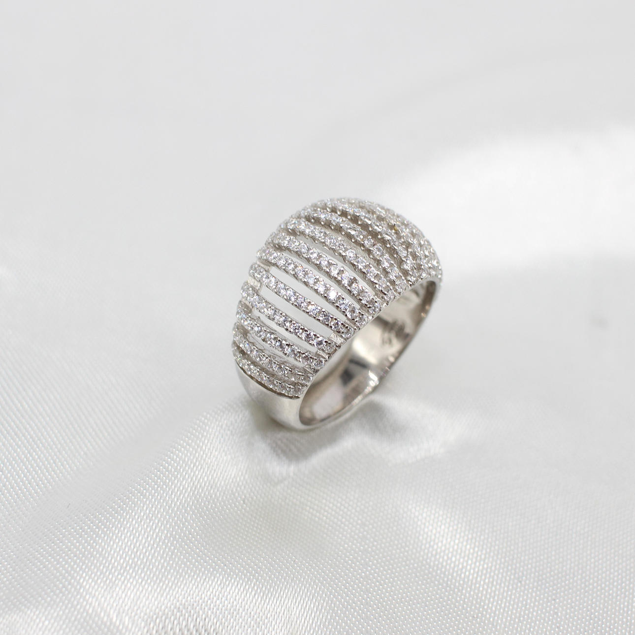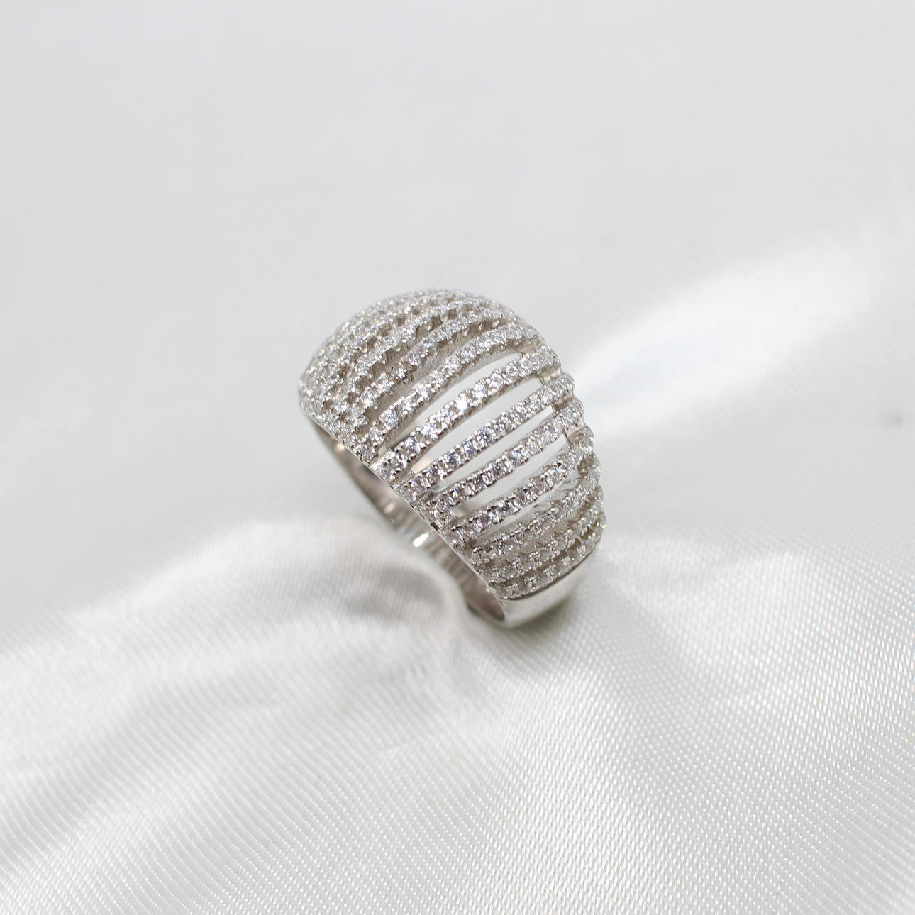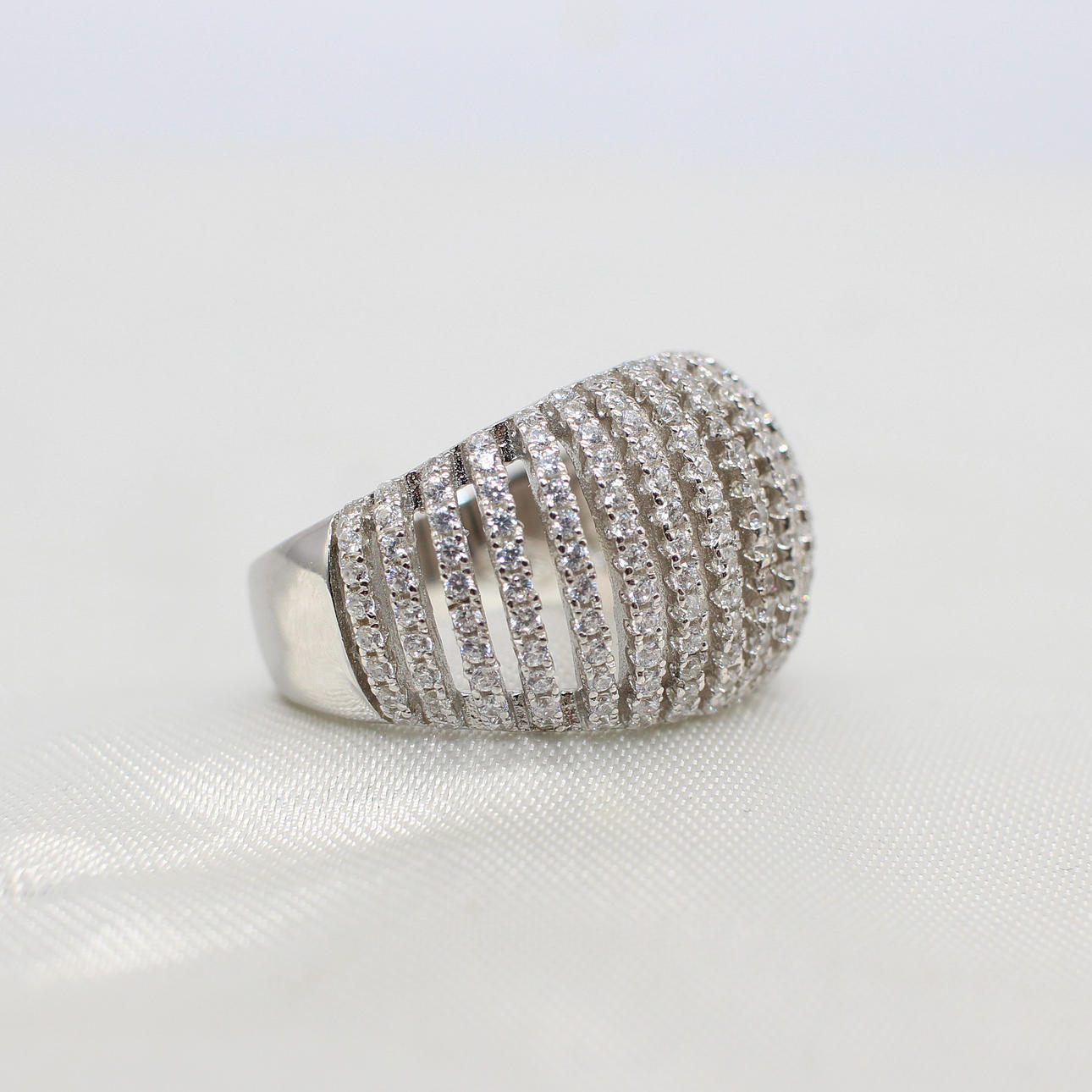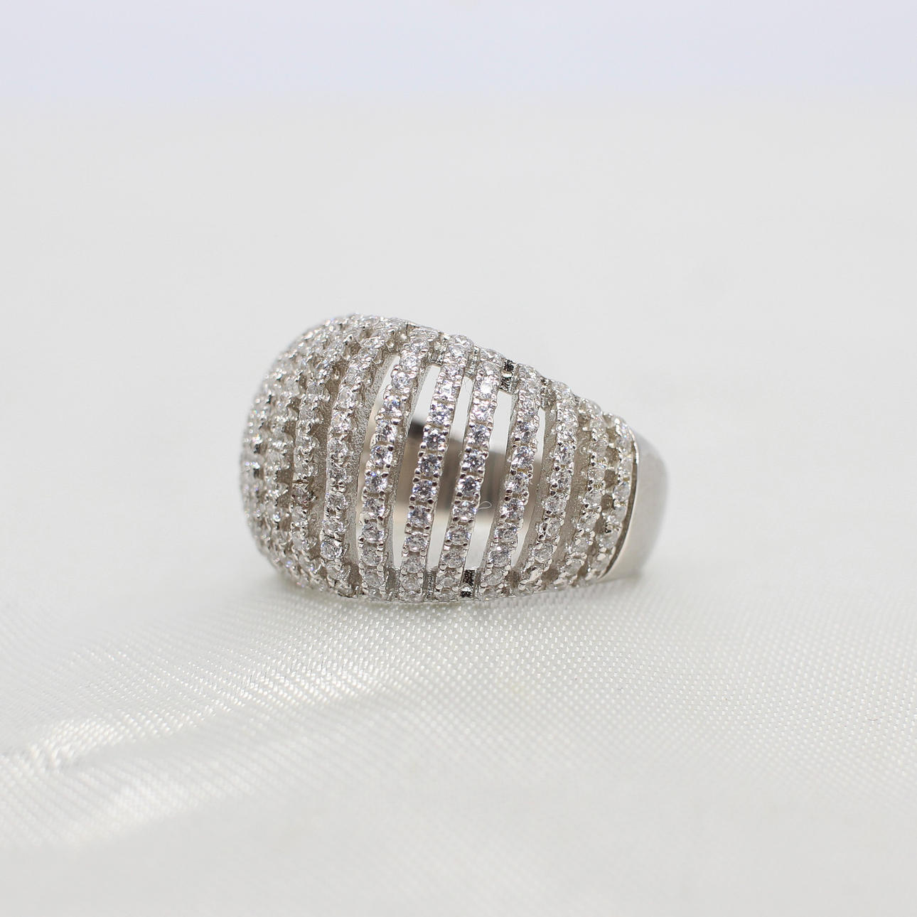 SILVER & CUBIC ZIRCONIA LATTICE RING.